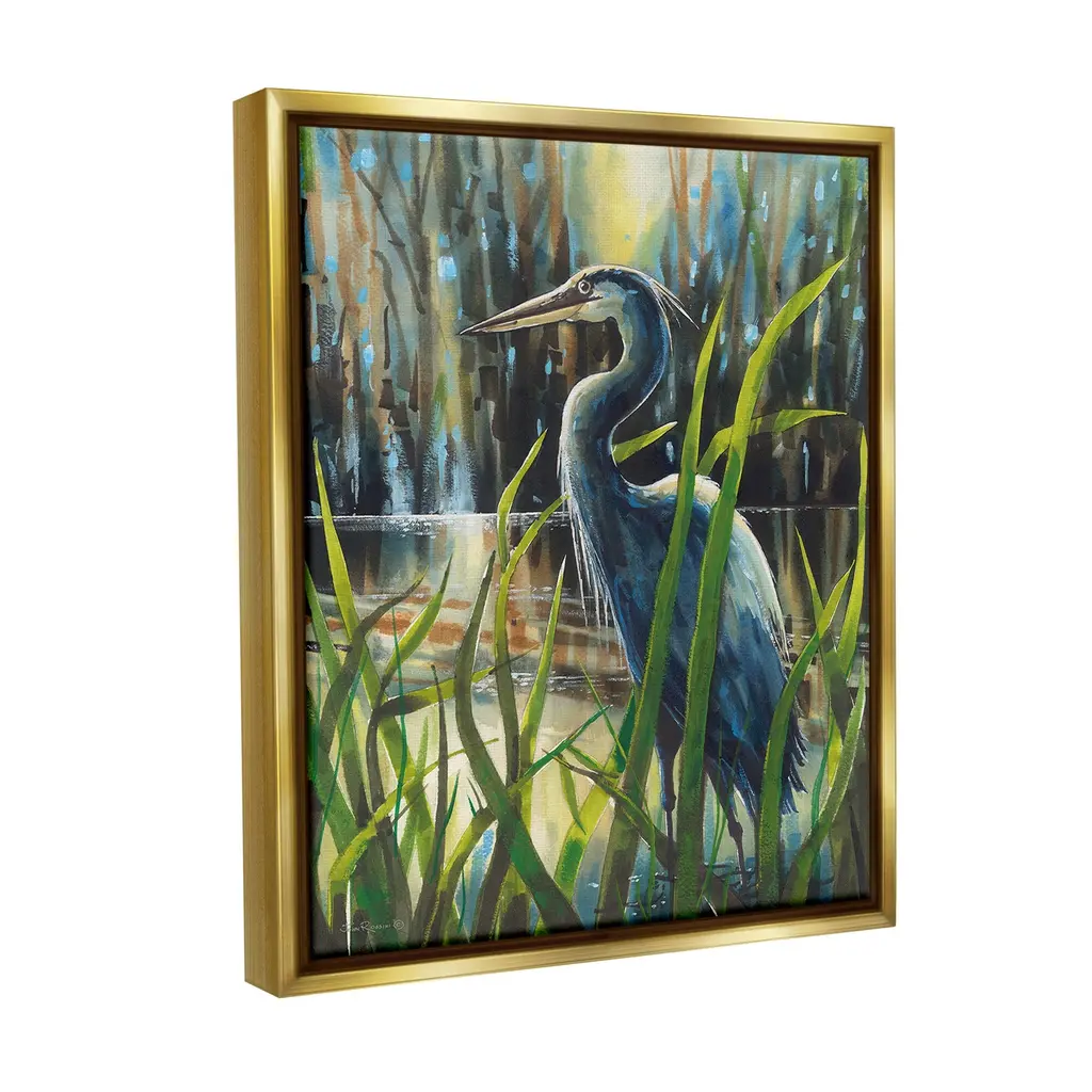 Stupell Heron Between Pond Reeds Framed Floater Canvas Wall Art Design By John Rossini - 25 X 31 - Gold