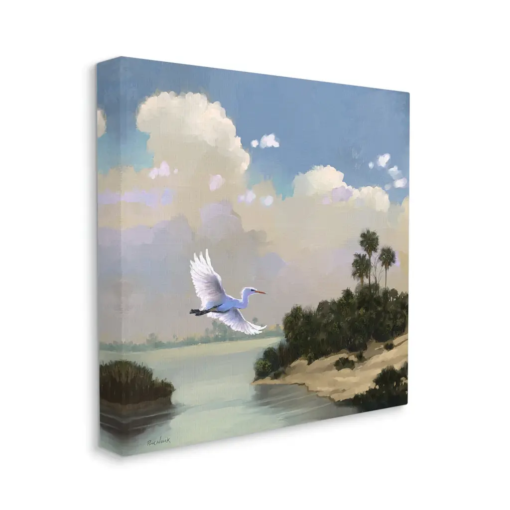 Proudly made in the USA, Our stretched canvas is created with the highest standards. We use only the highest quality inks and canvas on our in house Mimaki printers, and then hand cut and stretch each piece over a 1.5 inch thick wooden frame for hanging. The art comes ready to hang with no installation required. Room Type: Living Room, Den, Hallway, Office, Entryway, Study, Dining Room or Bedroom, Guest Room, Studio, Dorm or BoudoirFeatures: Dimensions: 17 x 1.5 x 17 InchesStretched Canvas Sizes Include Standard: 17 x 1.5 x 17 Large: 24 x 1.5 x 24 X-Large: 30 x 1.5 x 30 Oversized: 36 x 1.5 x 36Wall Art is Ready to Hang - No Installation or Hardware Needed. For Easy Set Up Lean or Layer Artwork on Shelf or Against Wall.Our stretched canvas is created with the highest standards. We use only the highest quality inks and canvas on our in house Mimaki printers, and then hand cut and stretch each piece over a 1.5 inch thick wooden frame for hanging. Made In USA.Artwork Relates To: Animal, Bird, Flying, Waterfowl, Painting, Egret, Heron, Nature, Crane Bird, Shoreline, Water, Palm Tree, BeachDesign by Rick Novak