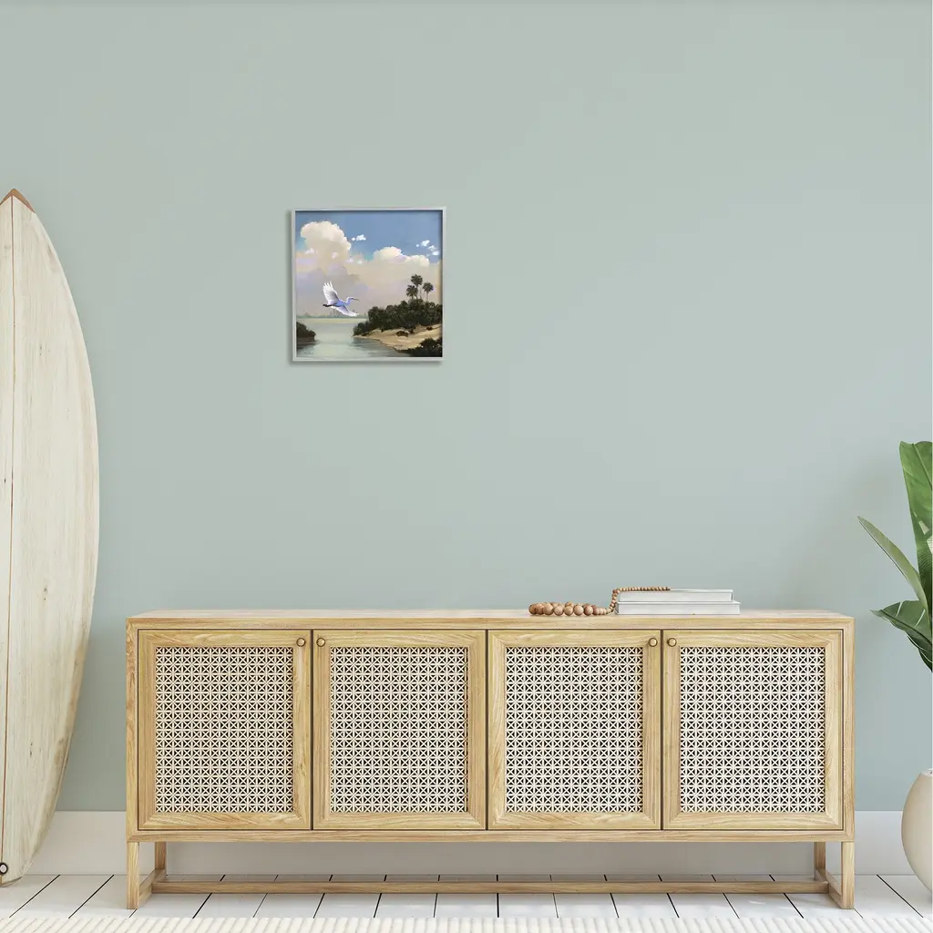 Our Framed Giclee Wall Art adds a touch of class to any space in your home or office. Frames are available in three alluring styles: black, gray farmhouse and white. Our textured artwork will add more depth and dimension to any space. Each piece is mounted with a 1.5 inch thick wood grain frame that is ready to hang! Looking for a statement piece? We have oversized artwork available. Room Type: Living Room, Den, Hallway, Office, Entryway, Study, Dining Room or Bedroom, Guest Room, Studio, Dorm or BoudoirFeatures: Dimensions: 12 x 1.5 x 12 FramedFramed Giclee Sizes Include Standard: 12 x 1.5 x 12 Large: 17 x 1.5 x 17 Oversized: 24 x 1.5 x 24Wall Art is Ready to Hang - No Installation or Hardware Needed. For Easy Set Up Lean or Layer Artwork on Shelf or Against Wall.Our giclée prints are carefully mounted on a durable MDF backing, and then perfectly finished in a 1.5 inch thick woodgrain frame. Mounted frame colors include black, gray farmhouse and white. Made In USA.Artwork Relates To: Animal, Bird, Flying, Waterfowl, Painting, Egret, Heron, Nature, Crane Bird, Shoreline, Water, Palm Tree, BeachDesign by Rick Novak
