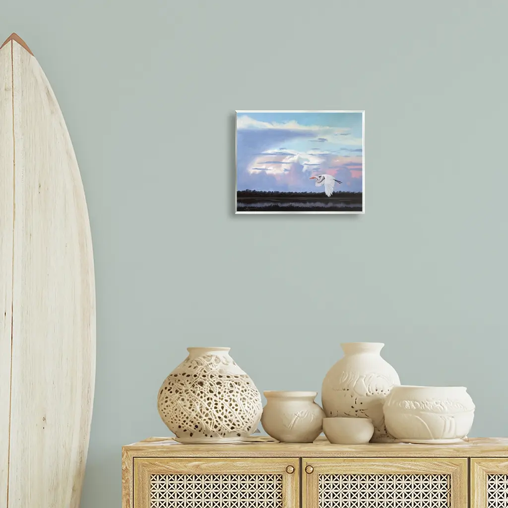 Our wall plaques start as high-quality lithograph prints mounted on durable 0.5-inch thick MDF wood. Each piece is hand finished and comes with a fresh layer of white foil on the sides to give it a crisp, clean look. Plaques arrive ready to hang without installation and come with removable plastic corners to keep them from damage in transit. Stupell Wall Art is made in the USA.Features: Dimensions: 14 x 0.5 x 11 InchesWall Art is Ready to Hang with Hardware Free Hanging. No installation required. For Easy Set Up Lean or Layer Artwork on Shelf or Against Wall.All of our wall plaques start off as high quality lithograph prints that are then mounted on durable 0.5 inch thick MDF wood. Each piece is hand finished and comes with a fresh layer of foil on the sides to give it a crisp clean look. Made In USA.Artwork Relates To: Animal, Bird, Flying, Waterfowl, Egret, Heron, Landscape, Cloud, LakeDesign by D. Rust