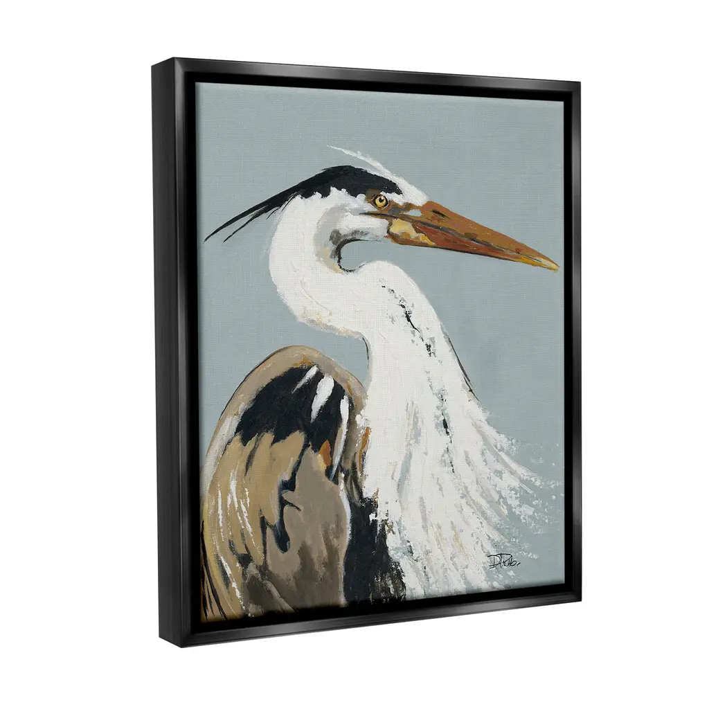Elevate your home or office to the next level with Stupell Framed Floating Canvas Wall Art. Our premium hand-stretched canvas is mounted securely into a sturdy lightweight frame. The museum-style gap between the wrapped canvas and the box frame gives the illusion of floating artwork. Stupell Wall Art is made in the USA.Features: Dimensions: 17 x 1.7 x 21 Frame, 16 x 1.5 x 20 Canvas ArtFloating Frame Canvas Products are available in sizes 17"x21" and 25"x31". All Floating Frame Canvas Products have a 1.7" Depth.Wall Art is Ready to Hang with Hardware Free Hanging. No Installation required. For Easy Set Up Lean or Layer Artwork on Shelf or Against Wall. Artwork is Permently Fixed into the Frame.Our elevated 1.7" Thick Floating Frame is the perfect complement to our canvas style Wall Art. We use only the highest quality inks in house with industry leading printing solutions. Canvas is hand stretched over a durable wood foundation and then mounted securly into a Modern Box Frame. Made in the USA.Artwork Relates To: Animal, Beak, Bird, Waterfowl, Crane Bird, Stork, Heron, Egret, PortraitDesign by Patricia Pinto