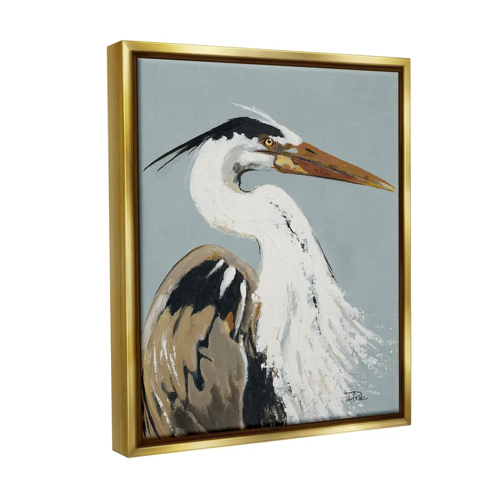 Elevate your home or office to the next level with Stupell Framed Floating Canvas Wall Art. Our premium hand-stretched canvas is mounted securely into a sturdy lightweight frame. The museum-style gap between the wrapped canvas and the box frame gives the illusion of floating artwork. Stupell Wall Art is made in the USA.Features: Dimensions: 17 x 1.7 x 21 Frame, 16 x 1.5 x 20 Canvas ArtFloating Frame Canvas Products are available in sizes 17"x21" and 25"x31". All Floating Frame Canvas Products have a 1.7" Depth.Wall Art is Ready to Hang with Hardware Free Hanging. No Installation required. For Easy Set Up Lean or Layer Artwork on Shelf or Against Wall. Artwork is Permently Fixed into the Frame.Our elevated 1.7" Thick Floating Frame is the perfect complement to our canvas style Wall Art. We use only the highest quality inks in house with industry leading printing solutions. Canvas is hand stretched over a durable wood foundation and then mounted securly into a Modern Box Frame. Made in the USA.Artwork Relates To: Animal, Beak, Bird, Waterfowl, Crane Bird, Stork, Heron, Egret, PortraitDesign by Patricia Pinto