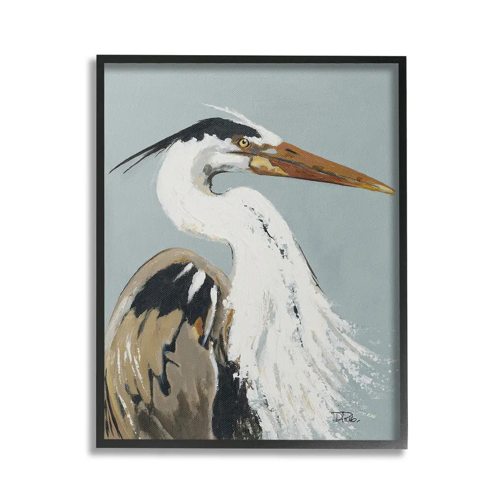 Add dimension to any room with our textured Framed Giclee Artwork. Our framed artwork is securely mounted into a 1.5-inch thick wood grain frame and ready to hang. Frames are available in three alluring styles: black, gray farmhouse and white. In addition, you should check out our oversized options if you want a statement piece. Stupell Wall Art is made in the USA.Features: Dimensions: 11 x 1.5 x 14 FramedFramed Giclee Products are available in the sizes 11"x14", 16"x20" or 24"x30". All Framed Giclee Products have a 1.5" Depth. Wall Art is Ready to Hang with Hardware Free Hanging. No installation required. For Easy Set Up Lean or Layer Artwork on Shelf or Against Wall.Our giclée prints are carefully mounted on a durable MDF backing, and then perfectly finished in a 1.5 inch thick woodgrain frame. Mounted frame colors include black, gray farmhouse and white. Made In USA.Artwork Relates To: Animal, Beak, Bird, Waterfowl, Crane Bird, Stork, Heron, Egret, PortraitDesign by Patricia Pinto