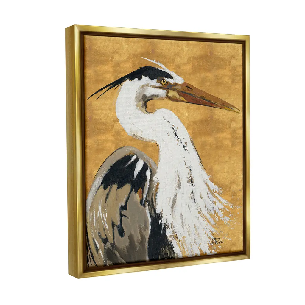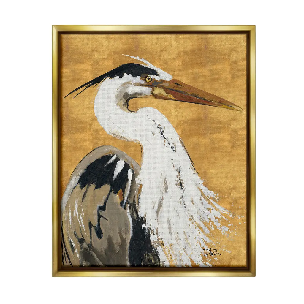Elevate your home or office to the next level with Stupell Framed Floating Canvas Wall Art. Our premium hand-stretched canvas is mounted securely into a sturdy lightweight frame. The museum-style gap between the wrapped canvas and the box frame gives the illusion of floating artwork. Stupell Wall Art is made in the USA.Features: Dimensions: 17 x 1.7 x 21 Frame, 16 x 1.5 x 20 Canvas ArtFloating Frame Canvas Products are available in sizes 17"x21" and 25"x31". All Floating Frame Canvas Products have a 1.7" Depth.Wall Art is Ready to Hang with Hardware Free Hanging. No Installation required. For Easy Set Up Lean or Layer Artwork on Shelf or Against Wall. Artwork is Permently Fixed into the Frame.Our elevated 1.7" Thick Floating Frame is the perfect complement to our canvas style Wall Art. We use only the highest quality inks in house with industry leading printing solutions. Canvas is hand stretched over a durable wood foundation and then mounted securly into a Modern Box Frame. Made in the USA.Artwork Relates To: Animal, Beak, Bird, Waterfowl, Crane Bird, Stork, Heron, Egret, PortraitDesign by Patricia Pinto