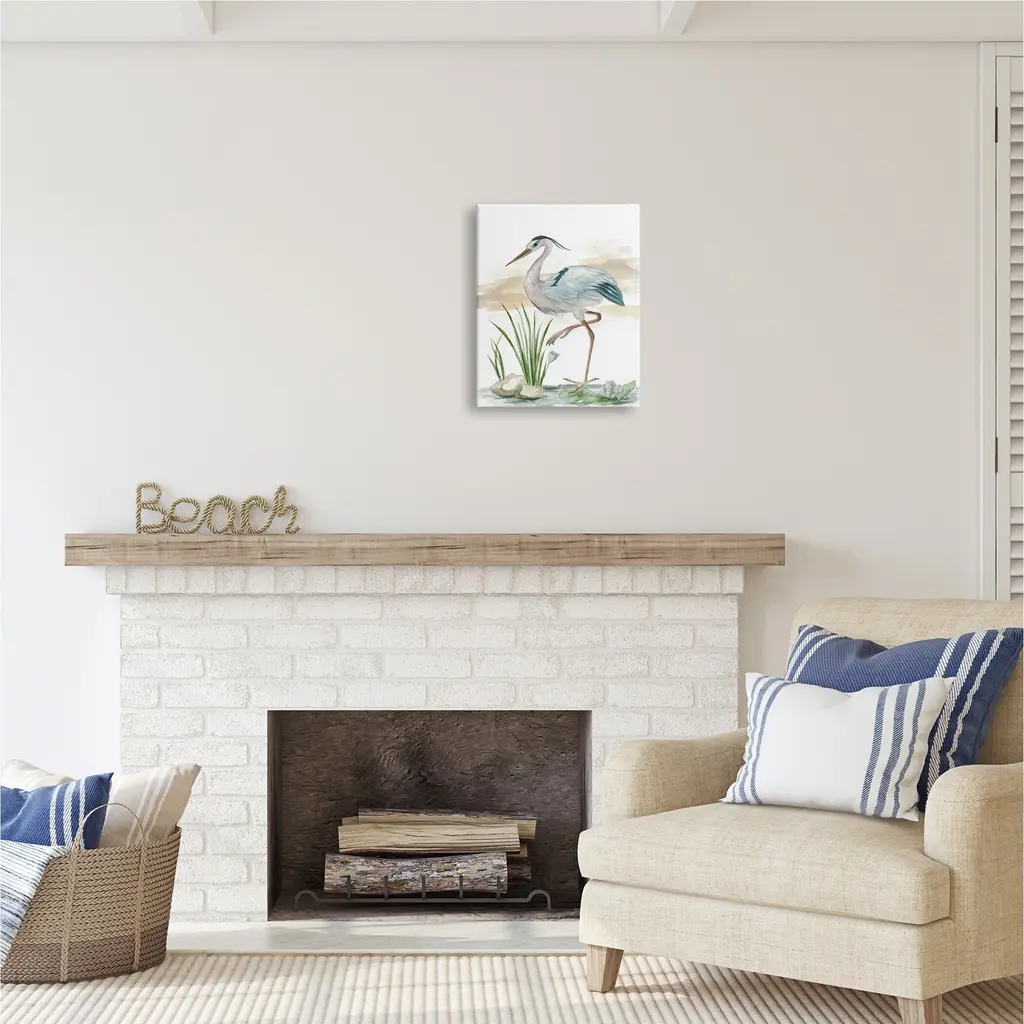 We create our stretched canvas to the highest standards. Using only the highest quality inks and canvas on Mimaki printers, we hand-cut and stretch each piece over a 1.5-inch thick wooden frame for hanging. As a result, the art comes ready to hang on the sturdy ledge with no installation required. Stupell Wall Art is made in the USA.Features: Dimensions: 16 x 1.5 x 20 InchesStretched Canvas Sizes Include Standard: 16 x 1.5 x 20 Large: 20 x 1.5 x 30 X-Large: 30 x 1.5 x 40 Oversized: 36 x 1.5 x 48Wall Art is Ready to Hang with Hardware Free Hanging. No installation required. For Easy Set Up Lean or Layer Artwork on Shelf or Against Wall.Our stretched canvas is created with the highest standards. We use only the highest quality inks and canvas on our in house Mimaki printers, and then hand cut and stretch each piece over a 1.5 inch thick wooden frame for hanging. Made In USA.Artwork Relates To: Animal, Bird, Waterfowl, Heron, Beach, Coast, Shore, PortraitDesign by Melissa Wang