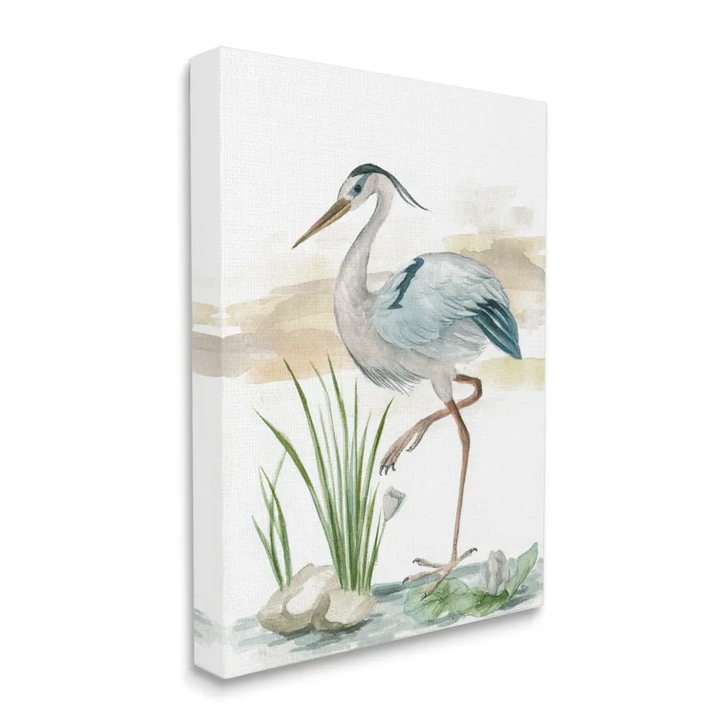 We create our stretched canvas to the highest standards. Using only the highest quality inks and canvas on Mimaki printers, we hand-cut and stretch each piece over a 1.5-inch thick wooden frame for hanging. As a result, the art comes ready to hang on the sturdy ledge with no installation required. Stupell Wall Art is made in the USA.Features: Dimensions: 16 x 1.5 x 20 InchesStretched Canvas Sizes Include Standard: 16 x 1.5 x 20 Large: 20 x 1.5 x 30 X-Large: 30 x 1.5 x 40 Oversized: 36 x 1.5 x 48Wall Art is Ready to Hang with Hardware Free Hanging. No installation required. For Easy Set Up Lean or Layer Artwork on Shelf or Against Wall.Our stretched canvas is created with the highest standards. We use only the highest quality inks and canvas on our in house Mimaki printers, and then hand cut and stretch each piece over a 1.5 inch thick wooden frame for hanging. Made In USA.Artwork Relates To: Animal, Bird, Waterfowl, Heron, Beach, Coast, Shore, PortraitDesign by Melissa Wang