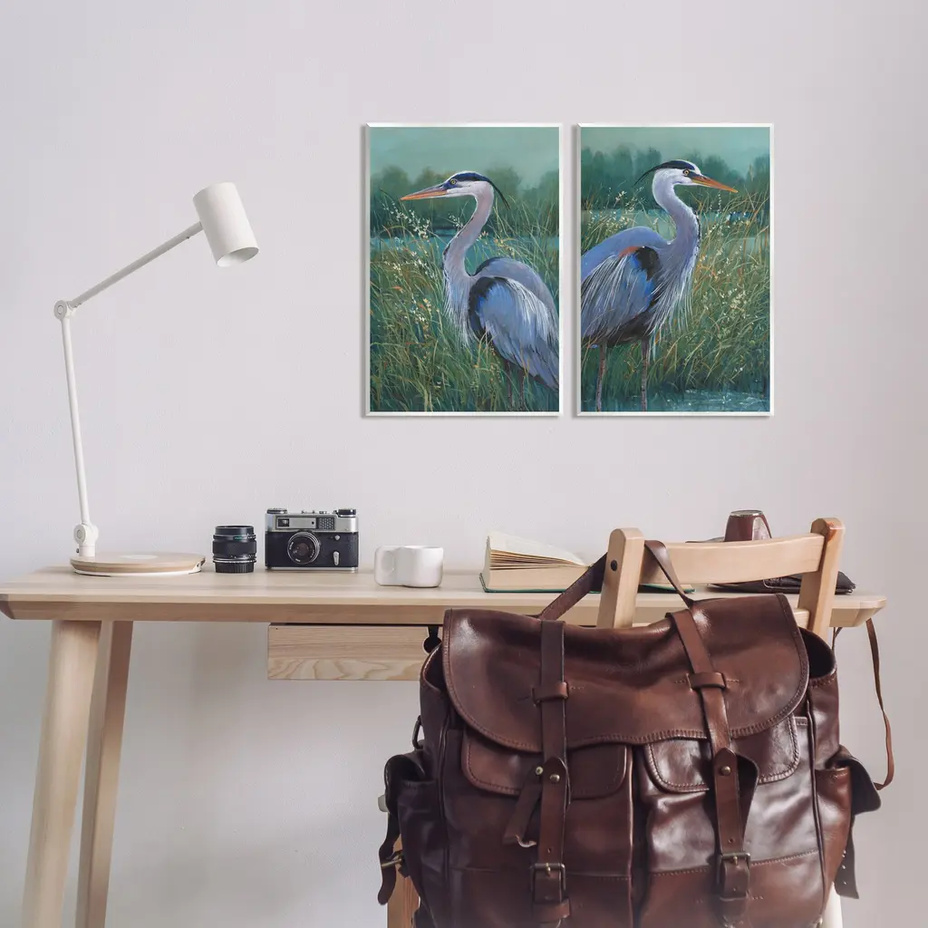 Fill any space with Stupell Wall Art Sets. Our wall plaques start as high-quality lithograph prints mounted on durable 0.5-inch thick MDF wood. Each piece is hand finished and comes with a fresh layer of white foil on the sides to give it a crisp, clean look. Plaques arrive ready to hang without installation and come with removable plastic corners to keep them from damage in transit. Stupell Industries Wall Art is made in the USA.Features: Dimensions: 2 Piece Set, Each Panel is 10 x 0.5 x 15 InchesWall Plaque Set Sizes Include Standard: 2pc, Each is 10 x 0.5 x 15 Oversized: 2pc, Each is 13 x 0.5 x 19Wall Art is Ready to Hang with Hardware Free Hanging. No installation required. For Easy Set Up Lean or Layer Artwork on Shelf or Against Wall.All of our wall plaques start off as high quality lithograph prints that are then mounted on durable 0.5 inch thick MDF wood. Each piece is hand finished and comes with a fresh layer of foil on the sides to give it a crisp clean look. Made In USA.Artwork Relates To: Animal, Bird, Waterfowl, Crane Bird, Stork, Heron, Water, Lake, CoastalDesign by Tim OToole