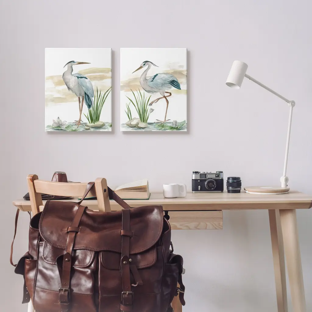 Fill any space with Stupell Wall Art Sets. We create our stretched canvas to the highest standards. Using only the highest quality inks and canvas on Mimaki printers, we hand-cut and stretch each piece over a 1.5-inch thick wooden frame for hanging. As a result, the art comes ready to hang on the sturdy ledge with no installation required. Stupell Wall Art is made in the USA.Features: Dimensions: 2 Piece Set, Each Panel is 16 x 1.5 x 20 InchesTwo Piece Canvas Set Sizes Include Standard: 2pc, Each is 16 x 1.5 x 20 Oversized: 2pc, Each is 24 x 1.5 x 30Wall Art is Ready to Hang with Hardware Free Hanging. No installation required. For Easy Set Up Lean or Layer Artwork on Shelf or Against Wall.Our stretched canvas is created with the highest standards. We use only the highest quality inks and canvas on our in house Mimaki printers, and then hand cut and stretch each piece over a 1.5 inch thick wooden frame for hanging. Made In USA.Artwork Relates To: Animal, Bird, Crane Bird, Plant, Heron, Beak, EgretDesign by Melissa Wang