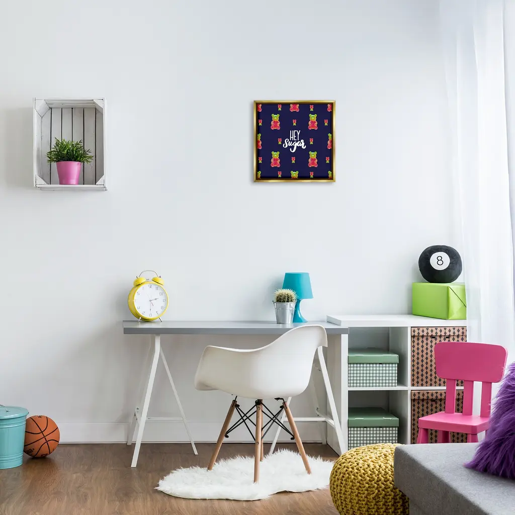 Elevate your home or office to the next level with Stupell Framed Floating Canvas Wall Art. Our premium hand-stretched canvas is mounted securely into a sturdy lightweight frame. The museum-style gap between the wrapped canvas and the box frame gives the illusion of floating artwork. Stupell Wall Art is made in the USA.Features: Dimensions: 18 x 1.7 x 18 Frame, 17 x 1.5 x 17 Canvas ArtFloating Frame Canvas Products are available in sizes 18"x18" and 25"x25". All Floating Frame Canvas Products have a 1.7" Depth.Wall Art is Ready to Hang with Hardware Free Hanging. No Installation required. For Easy Set Up Lean or Layer Artwork on Shelf or Against Wall. Artwork is Permently Fixed into the Frame.Our elevated 1.7" Thick Floating Frame is the perfect complement to our canvas style Wall Art. We use only the highest quality inks in house with industry leading printing solutions. Canvas is hand stretched over a durable wood foundation and then mounted securly into a Modern Box Frame. Made in the USA.Artwork Relates To: Food, Sweets, Candy, Bear, Abstract, Modern, Bold, Pattern, Hey SugarDesign by Amelia Noyes