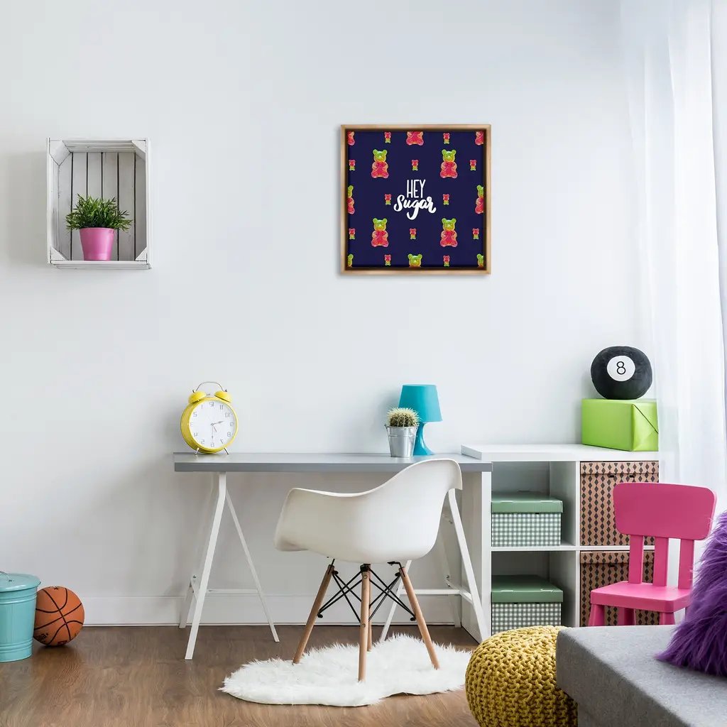Elevate your home or office to the next level with Stupell Framed Floating Canvas Wall Art. Our premium hand-stretched canvas is mounted securely into a sturdy lightweight frame. The museum-style gap between the wrapped canvas and the box frame gives the illusion of floating artwork. Stupell Wall Art is made in the USA.Features: Dimensions: 18 x 1.7 x 18 Frame, 17 x 1.5 x 17 Canvas ArtFloating Frame Canvas Products are available in sizes 18"x18" and 25"x25". All Floating Frame Canvas Products have a 1.7" Depth.Wall Art is Ready to Hang with Hardware Free Hanging. No Installation required. For Easy Set Up Lean or Layer Artwork on Shelf or Against Wall. Artwork is Permently Fixed into the Frame.Our elevated 1.7" Thick Floating Frame is the perfect complement to our canvas style Wall Art. We use only the highest quality inks in house with industry leading printing solutions. Canvas is hand stretched over a durable wood foundation and then mounted securly into a Modern Box Frame. Made in the USA.Artwork Relates To: Food, Sweets, Candy, Bear, Abstract, Modern, Bold, Pattern, Hey SugarDesign by Amelia Noyes