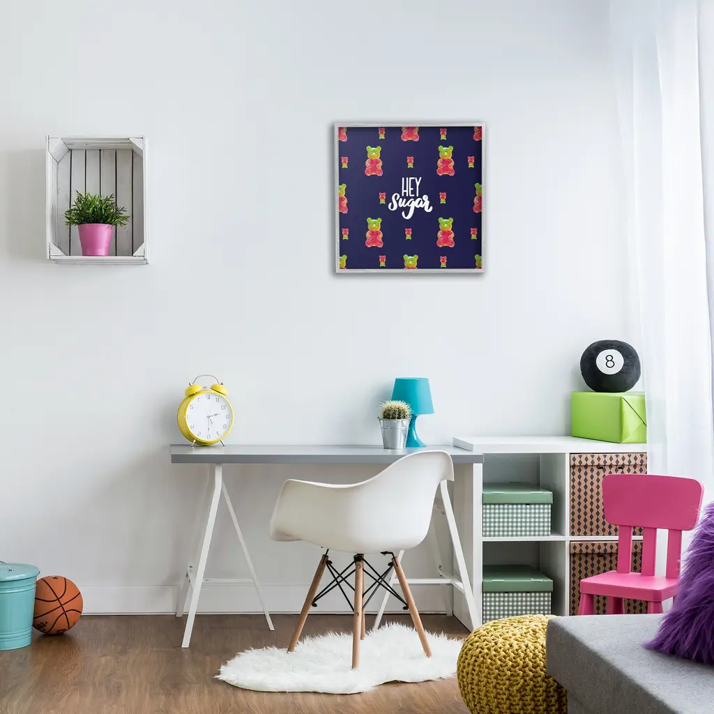 Add dimension to any room with our textured Framed Giclee Artwork. Our framed artwork is securely mounted into a 1.5-inch thick wood grain frame and ready to hang. Frames are available in three alluring styles: black, gray farmhouse and white. In addition, you should check out our oversized options if you want a statement piece. Stupell Wall Art is made in the USA.Features: Dimensions: 12 x 1.5 x 12 FramedFramed Giclee Product Sizes Include 12"x12", 17"x17", and 24"x24". Framed Giclee Products have a 1.5" Depth. Wall Art is Ready to Hang with Hardware Free Hanging. No installation required. For Easy Set Up Lean or Layer Artwork on Shelf or Against Wall.Our giclée prints are carefully mounted on a durable MDF backing, and then perfectly finished in a 1.5 inch thick woodgrain frame. Mounted frame colors include black, gray farmhouse and white. Made In USA.Artwork Relates To: Food, Sweets, Candy, Bear, Abstract, Modern, Bold, Pattern, Hey SugarDesign by Amelia Noyes