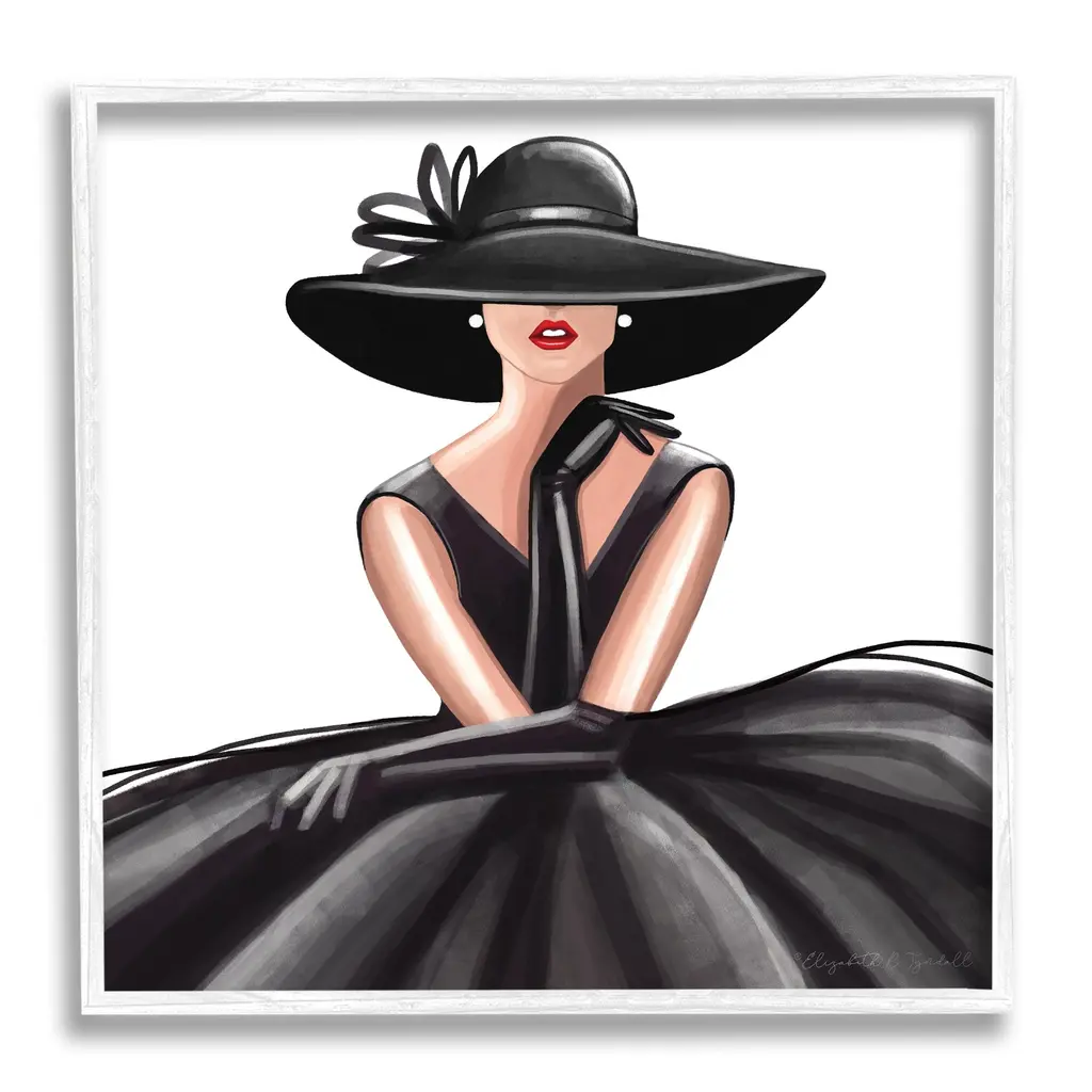 Stupell High End Fashion Glam Pose Luxurious Black Dress Framed Wall Art - 12 X 12 - Black