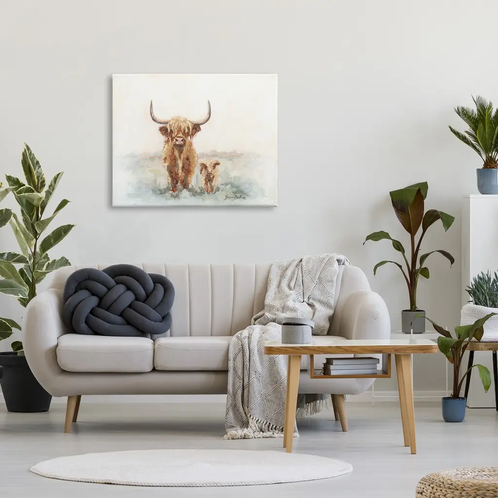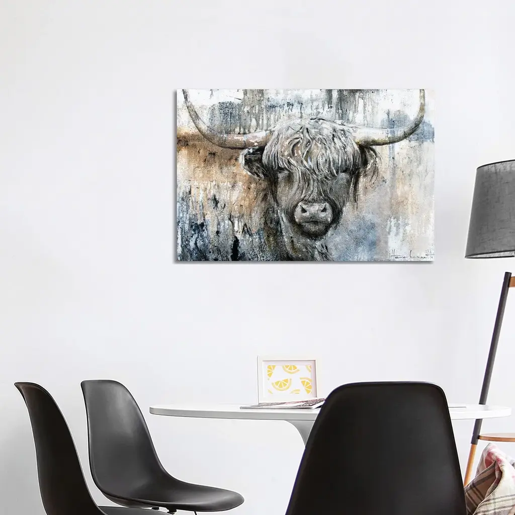 Proudly made in the USA, Our stretched canvas is created with the highest standards. We use only the highest quality inks and canvas on our in house Mimaki printers, and then hand cut and stretch each piece over a 1.5 inch thick wooden frame for hanging. The art comes ready to hang with no installation required. Room Type: Living Room, Den, Hallway, Office, Entryway, Study, Dining Room or Bedroom, Guest Room, Studio, Dorm or BoudoirFeatures: Dimensions: 20 x 1.5 x 16 InchesStretched Canvas Sizes Include Standard: 20 x 1.5 x 16 Large: 30 x 1.5 x 20 X-Large: 40 x 1.5 x 30 Oversized: 48 x 1.5 x 36Wall Art is Ready to Hang - No Installation or Hardware Needed. For Easy Set Up Lean or Layer Artwork on Shelf or Against Wall.Our stretched canvas is created with the highest standards. We use only the highest quality inks and canvas on our in house Mimaki printers, and then hand cut and stretch each piece over a 1.5 inch thick wooden frame for hanging. Made In USA.Artwork Relates To: Animal, Cattle, Mammal, Longhorn, Calf, Cow, Wildlife, Highland CattleDesign by Sara Baker