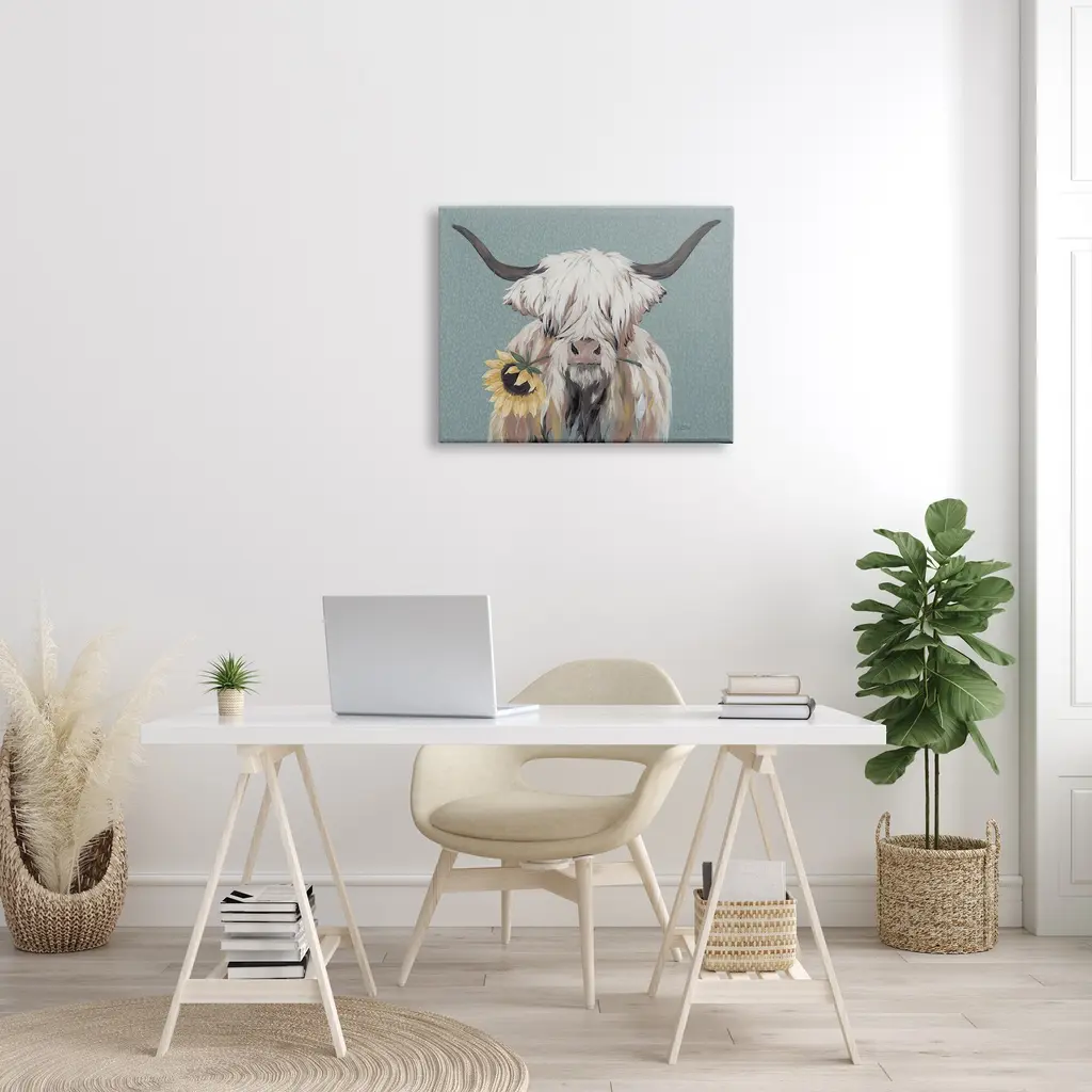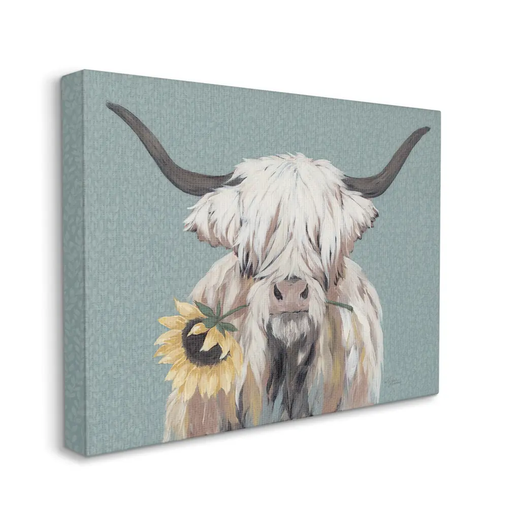 Proudly made in the USA, Our stretched canvas is created with the highest standards. We use only the highest quality inks and canvas on our in house Mimaki printers, and then hand cut and stretch each piece over a 1.5 inch thick wooden frame for hanging. The art comes ready to hang with no installation required. Not to mention, at this size, it is sure to be the focal point of any room!Features:Stretched Canvas Sizes IncludeStandard: 20 x 1.5 x 16Large: 30 x 1.5 x 20X-Large: 40 x 1.5 x 30Oversized: 48 x 1.5 x 36Wall Art is Ready to Hang - No Installation or Hardware Needed. For Easy Set Up Lean or Layer Artwork on Shelf or Against Wall.Artwork Relates To: Animal, Mammal, Cattle, Flower, Blossom, SunflowerOur stretched canvas is created with the highest standards. We use only the highest quality inks and canvas on our in house Mimaki printers, and then hand cut and stretch each piece over a 1.5 inch thick wooden frame for hanging. Made In USA.Design by Michele Norman
