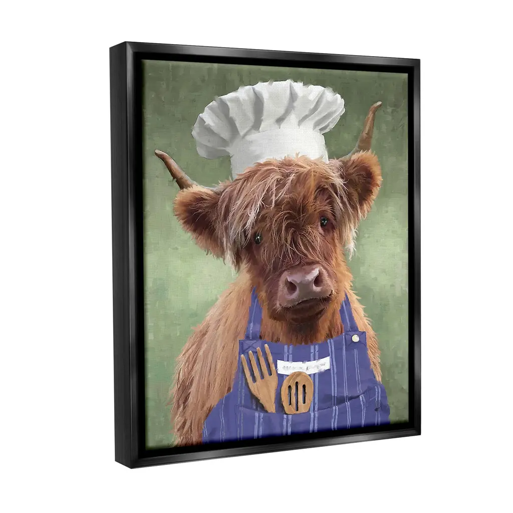 Elevate your home or office to the next level with Stupell Framed Floating Canvas Wall Art. Our premium hand-stretched canvas is mounted securely into a sturdy lightweight frame. The museum-style gap between the wrapped canvas and the box frame gives the illusion of floating artwork. Stupell Wall Art is made in the USA.Features: Dimensions: 17 x 1.7 x 21 Frame, 16 x 1.5 x 20 Canvas ArtFloating Frame Canvas Products are available in sizes 17"x21" and 25"x31". All Floating Frame Canvas Products have a 1.7" Depth.Wall Art is Ready to Hang with Hardware Free Hanging. No Installation required. For Easy Set Up Lean or Layer Artwork on Shelf or Against Wall. Artwork is Permently Fixed into the Frame.Our elevated 1.7" Thick Floating Frame is the perfect complement to our canvas style Wall Art. We use only the highest quality inks in house with industry leading printing solutions. Canvas is hand stretched over a durable wood foundation and then mounted securly into a Modern Box Frame. Made in the USA.Artwork Relates To: Animal, Mammal, Cattle, Farmhouse, Country, Chef, Portrait, Kitchen, CookingDesign by PSL Art
