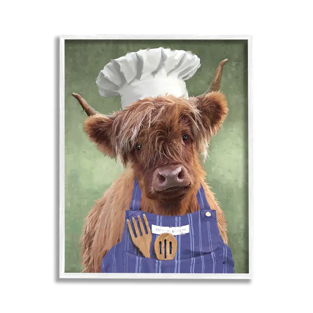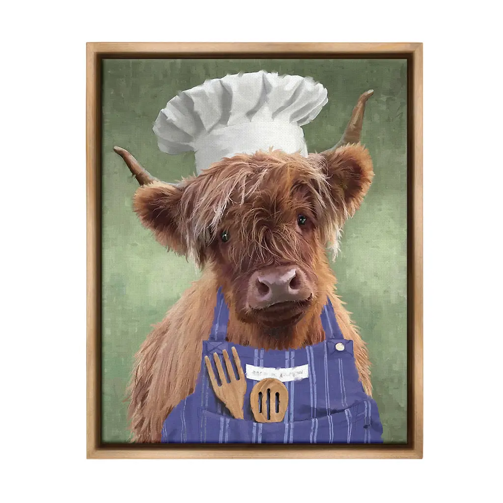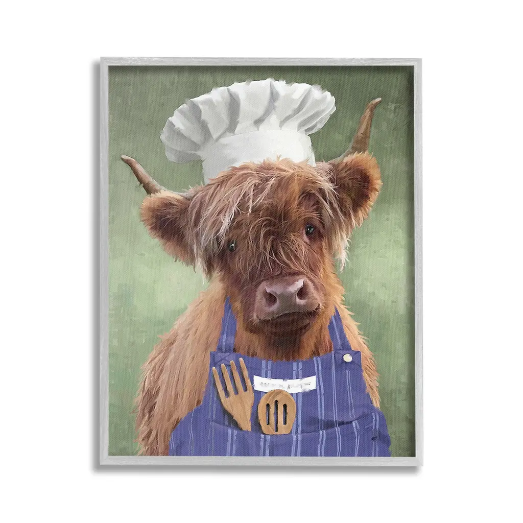 Elevate your home or office to the next level with Stupell Framed Floating Canvas Wall Art. Our premium hand-stretched canvas is mounted securely into a sturdy lightweight frame. The museum-style gap between the wrapped canvas and the box frame gives the illusion of floating artwork. Stupell Wall Art is made in the USA.Features: Dimensions: 17 x 1.7 x 21 Frame, 16 x 1.5 x 20 Canvas ArtFloating Frame Canvas Products are available in sizes 17"x21" and 25"x31". All Floating Frame Canvas Products have a 1.7" Depth.Wall Art is Ready to Hang with Hardware Free Hanging. No Installation required. For Easy Set Up Lean or Layer Artwork on Shelf or Against Wall. Artwork is Permently Fixed into the Frame.Our elevated 1.7" Thick Floating Frame is the perfect complement to our canvas style Wall Art. We use only the highest quality inks in house with industry leading printing solutions. Canvas is hand stretched over a durable wood foundation and then mounted securly into a Modern Box Frame. Made in the USA.Artwork Relates To: Animal, Mammal, Cattle, Farmhouse, Country, Chef, Portrait, Kitchen, CookingDesign by PSL Art