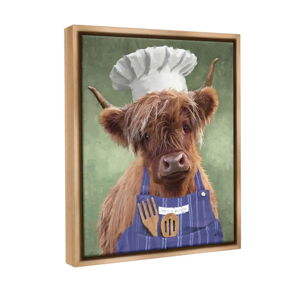 Elevate your home or office to the next level with Stupell Framed Floating Canvas Wall Art. Our premium hand-stretched canvas is mounted securely into a sturdy lightweight frame. The museum-style gap between the wrapped canvas and the box frame gives the illusion of floating artwork. Stupell Wall Art is made in the USA.Features: Dimensions: 17 x 1.7 x 21 Frame, 16 x 1.5 x 20 Canvas ArtFloating Frame Canvas Products are available in sizes 17"x21" and 25"x31". All Floating Frame Canvas Products have a 1.7" Depth.Wall Art is Ready to Hang with Hardware Free Hanging. No Installation required. For Easy Set Up Lean or Layer Artwork on Shelf or Against Wall. Artwork is Permently Fixed into the Frame.Our elevated 1.7" Thick Floating Frame is the perfect complement to our canvas style Wall Art. We use only the highest quality inks in house with industry leading printing solutions. Canvas is hand stretched over a durable wood foundation and then mounted securly into a Modern Box Frame. Made in the USA.Artwork Relates To: Animal, Mammal, Cattle, Farmhouse, Country, Chef, Portrait, Kitchen, CookingDesign by PSL Art