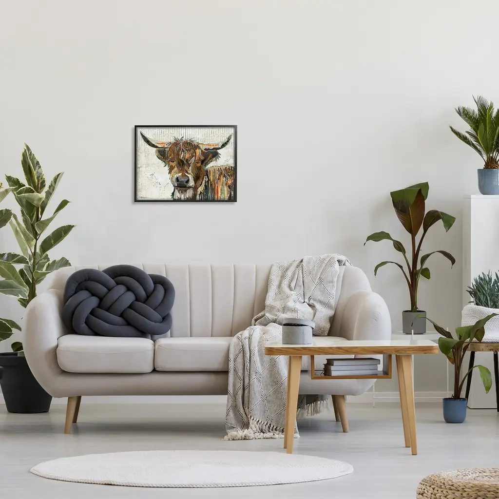Our Framed Giclee Wall Art adds a touch of class to any space in your home or office. Frames are available in three alluring styles: black, gray farmhouse and white. Our textured artwork will add more depth and dimension to any space. Each piece is mounted with a 1.5 inch thick wood grain frame that is ready to hang! Looking for a statement piece? We have oversized artwork available.Features:Framed Giclee Sizes IncludeStandard: 14 x 1.5 x 11Large: 20 x 1.5 x 16Oversized: 30 x 1.5 x 24Wall Art is Ready to Hang - No Installation or Hardware Needed. For Easy Set Up Lean or Layer Artwork on Shelf or Against Wall.Artwork Relates To: Cattle, Cow, Highland Cattle, Collage, Pattern, StripesOur giclee prints are carefully mounted on a durable MDF backing, and then perfectly finished in a 1.5 inch thick woodgrain frame. Mounted frame colors include black, gray farmhouse and white. Made In USA.Design by Traci Anderson