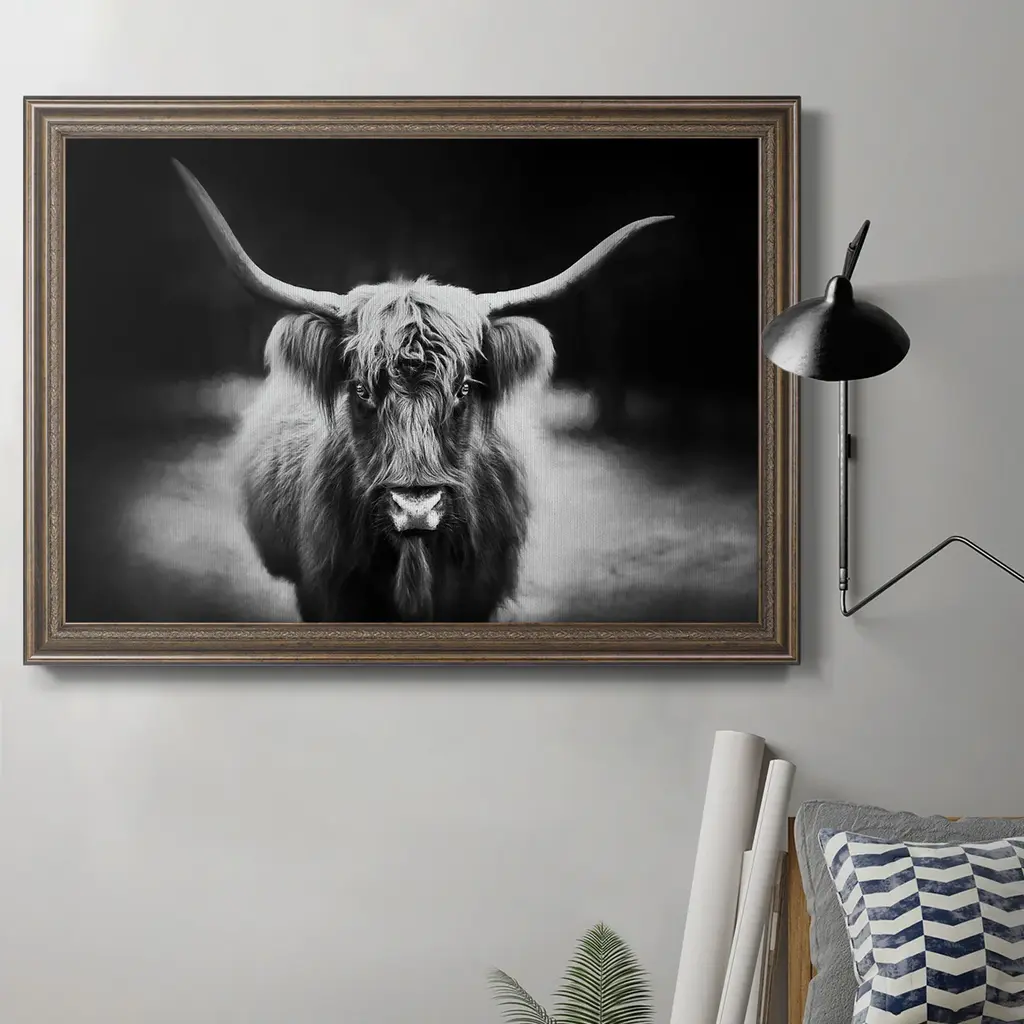 Our Framed Giclee Wall Art adds a touch of class to any space in your home or office. Frames are available in three alluring styles: black, gray farmhouse and white. Our textured artwork will add more depth and dimension to any space. Each piece is mounted with a 1.5 inch thick wood grain frame that is ready to hang! Looking for a statement piece? We have oversized artwork available.Features:Framed Giclee Sizes IncludeStandard: 14 x 1.5 x 11Large: 20 x 1.5 x 16Oversized: 30 x 1.5 x 24Wall Art is Ready to Hang - No Installation or Hardware Needed. For Easy Set Up Lean or Layer Artwork on Shelf or Against Wall.Artwork Relates To: Mammal, Animal, Cow, Cattle, Longhorn, PhotographyOur giclee prints are carefully mounted on a durable MDF backing, and then perfectly finished in a 1.5 inch thick woodgrain frame. Mounted frame colors include black, gray farmhouse and white. Made In USA.Design by Nathan Larson