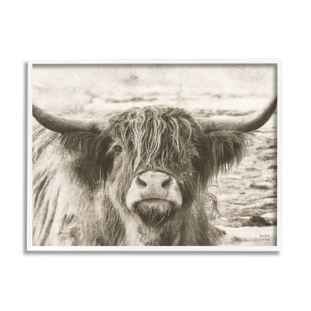Our Framed Giclee Wall Art adds a touch of class to any space in your home or office. Frames are available in three alluring styles: black, gray farmhouse and white. Our textured artwork will add more depth and dimension to any space. Each piece is mounted with a 1.5 inch thick wood grain frame that is ready to hang! Looking for a statement piece? We have oversized artwork available.Features:Framed Giclee Sizes IncludeStandard: 14 x 1.5 x 11Large: 20 x 1.5 x 16Oversized: 30 x 1.5 x 24Wall Art is Ready to Hang - No Installation or Hardware Needed. For Easy Set Up Lean or Layer Artwork on Shelf or Against Wall.Artwork Relates To: Mammal, Animal, Cow, Cattle, Longhorn, PhotographyOur giclee prints are carefully mounted on a durable MDF backing, and then perfectly finished in a 1.5 inch thick woodgrain frame. Mounted frame colors include black, gray farmhouse and white. Made In USA.Design by Nathan Larson