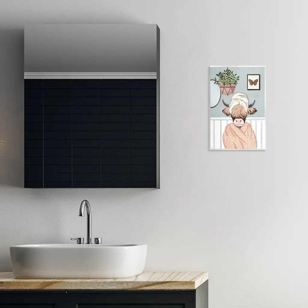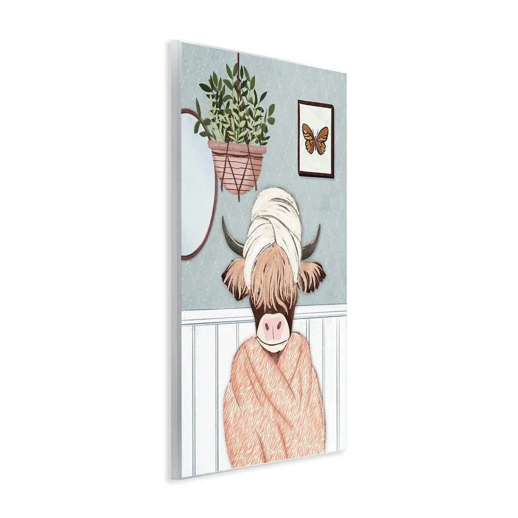 Our wall plaques start as high-quality lithograph prints mounted on durable 0.5-inch thick MDF wood. Each piece is hand finished and comes with a fresh layer of white foil on the sides to give it a crisp, clean look. Plaques arrive ready to hang without installation and come with removable plastic corners to keep them from damage in transit. Stupell Wall Art is made in the USA.Features: Dimensions: 10 x 0.5 x 15 InchesWall Plaque Product Sizes Include 10"x15" and 13"x19". All wall plaque products have a 0.5" Depth. Wall Art is Ready to Hang with Hardware Free Hanging. No installation required. For Easy Set Up Lean or Layer Artwork on Shelf or Against Wall.All of our wall plaques start off as high quality lithograph prints that are then mounted on durable 0.5 inch thick MDF wood. Each piece is hand finished and comes with a fresh layer of foil on the sides to give it a crisp clean look. Made In USA.Artwork Relates To: Bathroom, Relax, Tub, Bathtub, Plant, Botanical, Animal, Cow, CattleDesign by JJ Design House, LLC.