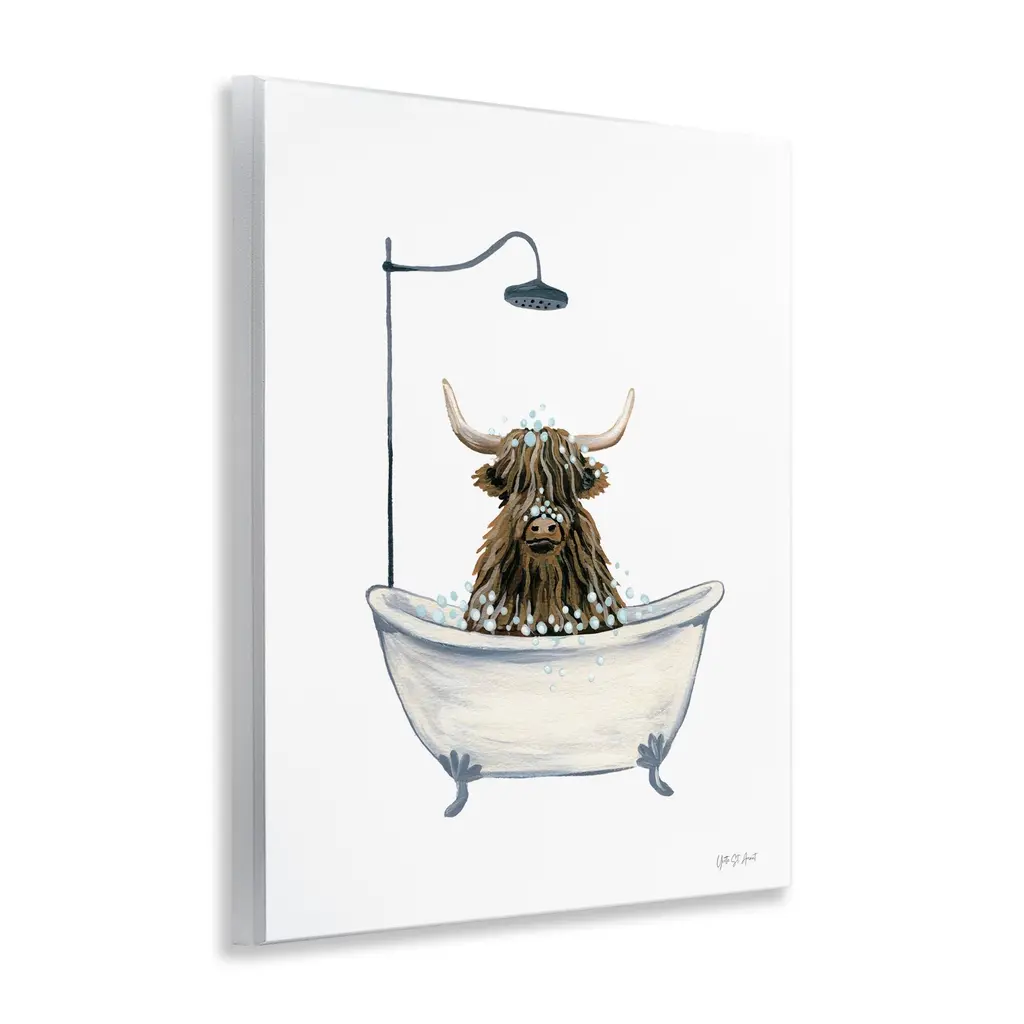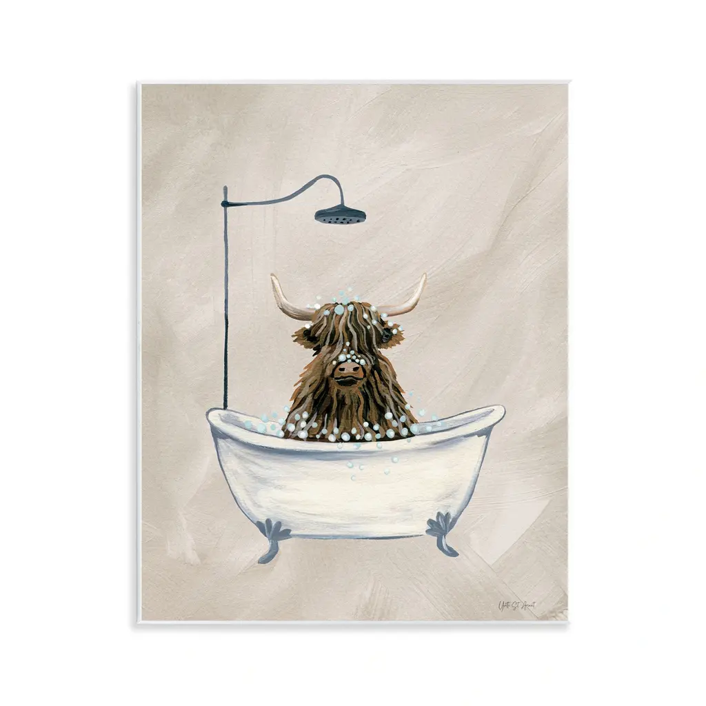Our wall plaques start as high-quality lithograph prints mounted on durable 0.5-inch thick MDF wood. Each piece is hand finished and comes with a fresh layer of white foil on the sides to give it a crisp, clean look. Plaques arrive ready to hang without installation and come with removable plastic corners to keep them from damage in transit. Stupell Wall Art is made in the USA.Features: Dimensions: 11 x 0.5 x 14 InchesWall Art is Ready to Hang with Hardware Free Hanging. No installation required. For Easy Set Up Lean or Layer Artwork on Shelf or Against Wall.All of our wall plaques start off as high quality lithograph prints that are then mounted on durable 0.5 inch thick MDF wood. Each piece is hand finished and comes with a fresh layer of foil on the sides to give it a crisp clean look. Made In USA.Artwork Relates To: Bathing, Bathtub, Tub, Bathroom, Animal, Farm, CattleDesign by Yvette St. Amant