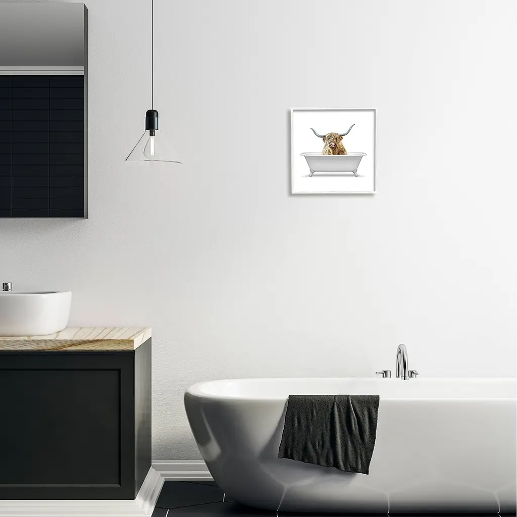 Our Framed Giclee Wall Art adds a touch of class to any space in your home or office. Frames are available in three alluring styles: black, gray farmhouse and white. Our textured artwork will add more depth and dimension to any space. Each piece is mounted with a 1.5 inch thick wood grain frame that is ready to hang! Looking for a statement piece? We have oversized artwork available.Features:Framed Giclee Sizes IncludeStandard: 12 x 1.5 x 12Large: 17 x 1.5 x 17Oversized: 24 x 1.5 x 24Wall Art is Ready to Hang - No Installation or Hardware Needed. For Easy Set Up Lean or Layer Artwork on Shelf or Against Wall.Artwork Relates To: Bathtub, Tub, Animal, Mammal, Wildlife, Cow, Cattle, Farm AnimalOur giclee prints are carefully mounted on a durable MDF backing, and then perfectly finished in a 1.5 inch thick woodgrain frame. Mounted frame colors include black, gray farmhouse and white. Made In USA.Design by Annalisa Latella