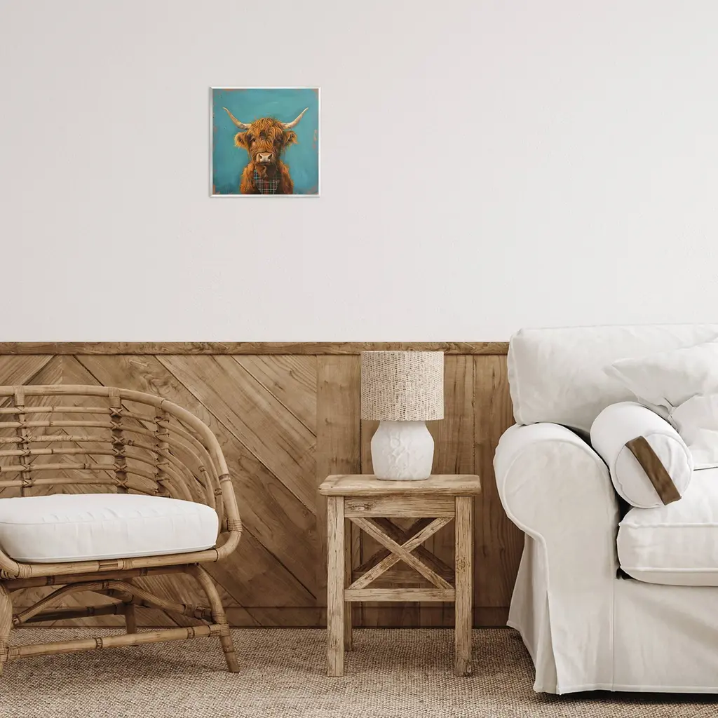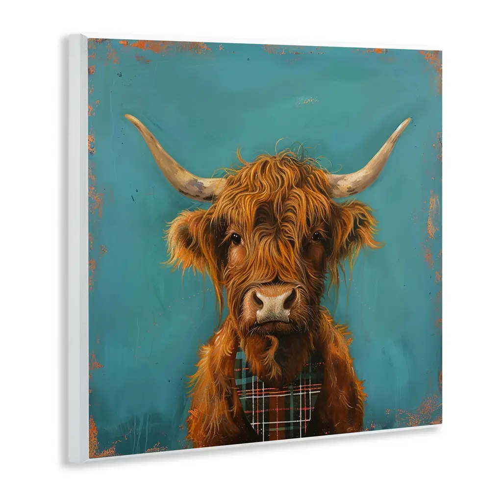Stupell Highland Cow On Blue Wall Plaque Art Design By Lsr Design Studio - 12 X 12