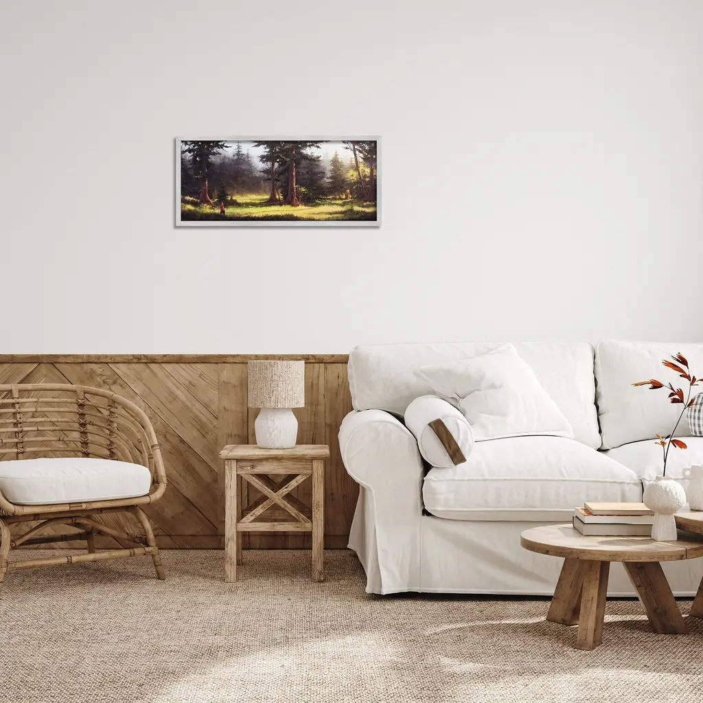 Add dimension to any room with our textured Framed Giclee Artwork. Our framed artwork is securely mounted into a 1.5-inch thick wood grain frame and ready to hang. Frames are available in three alluring styles: black, gray farmhouse and white. In addition, you should check out our oversized options if you want a statement piece. Stupell Wall Art is made in the USA.Features: Dimensions: 24 x 1.5 x 10 FramedFramed Giclee Product Sizes include 24"x10" and 30"x13". All Framed Giclee products have a 1.5" Depth.Wall Art is Ready to Hang with Hardware Free Hanging. No installation required. For Easy Set Up Lean or Layer Artwork on Shelf or Against Wall.Our giclée prints are carefully mounted on a durable MDF backing, and then perfectly finished in a 1.5 inch thick woodgrain frame. Mounted frame colors include black, gray farmhouse and white. Made In USA.Artwork Relates To: Plant, Vegetation, Grove, Land, Nature, Tree, Woodland, Landscape, Scenery, Wilderness, Person, Grass, Sunlight, PanoramicDesign by Vlad Mel