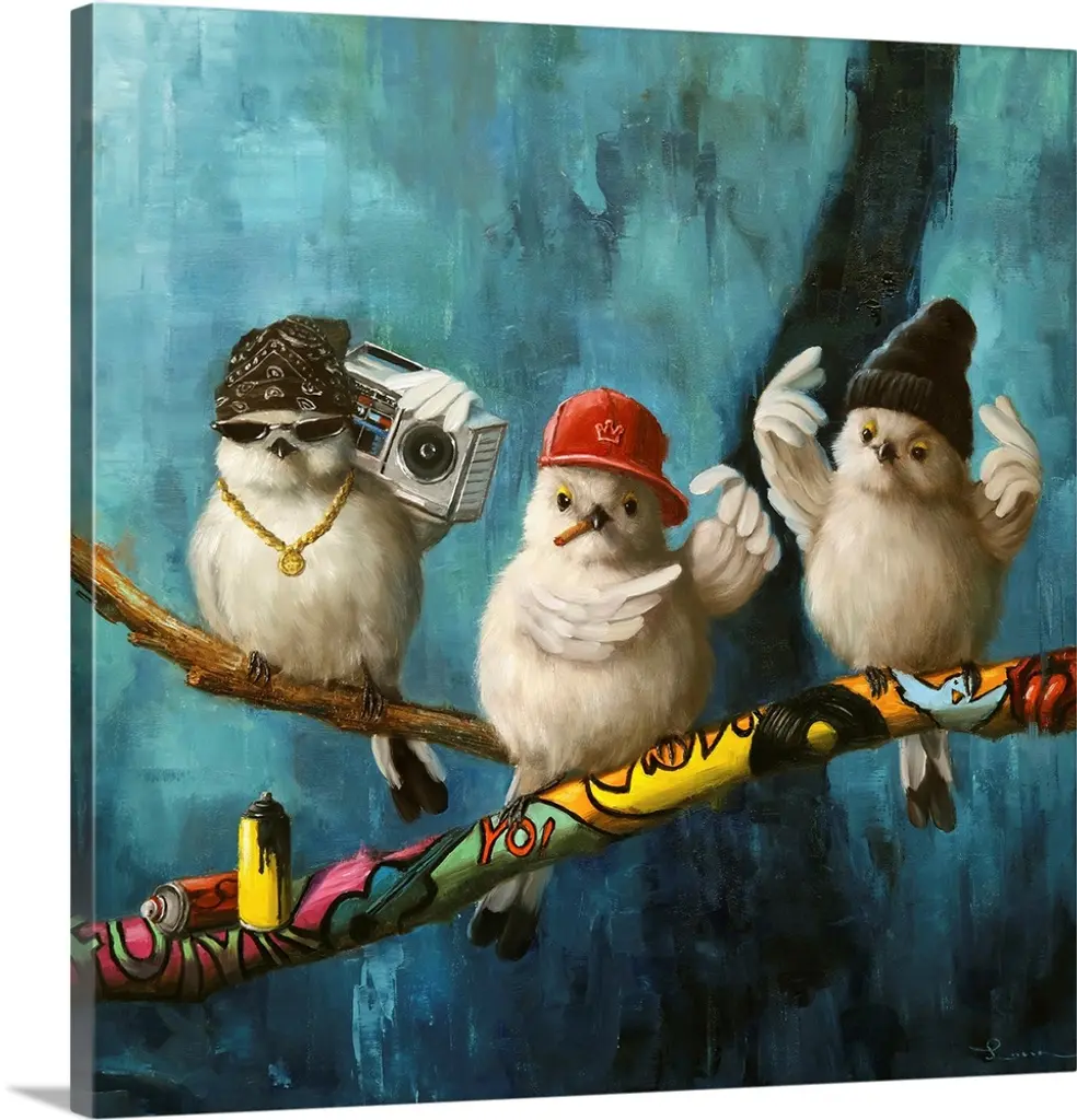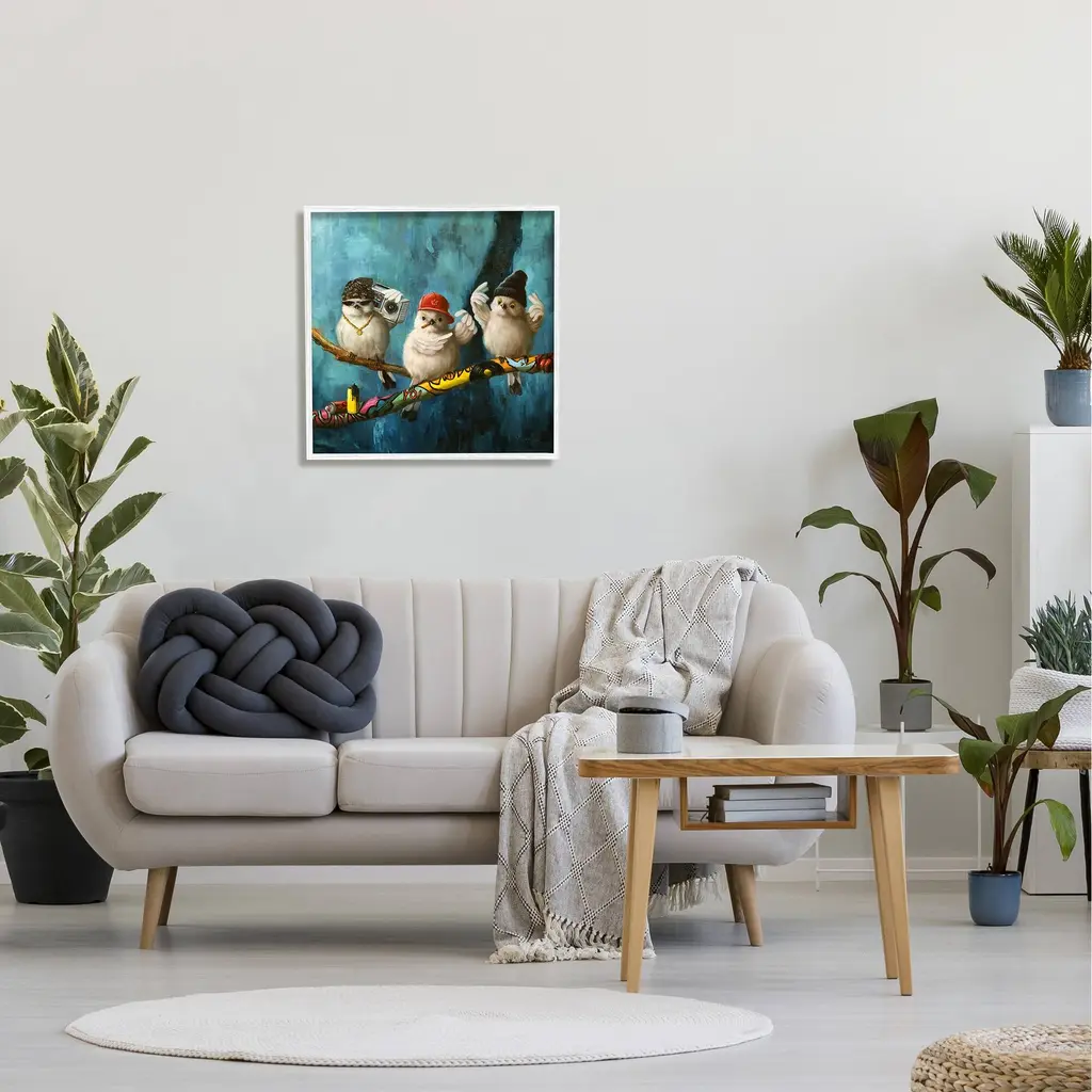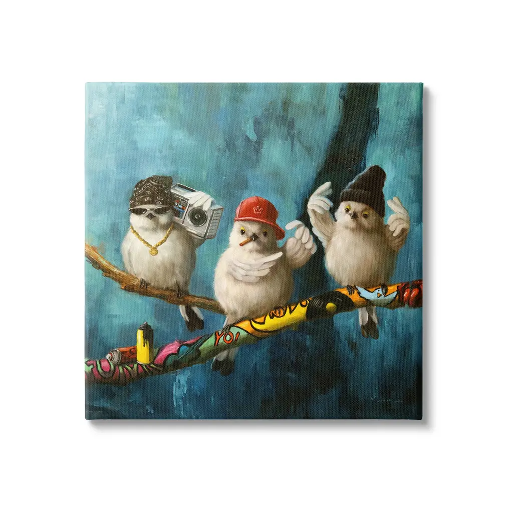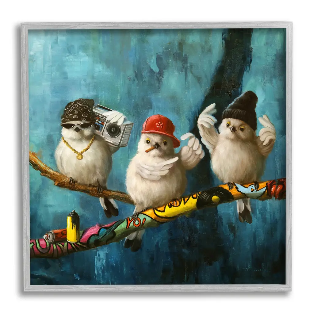 Stupell Hip Hop Bird Trio Urban Graffiti Tree Boombox Framed Wall Art, Design By Lucia Heffernan - Blue - 24 X 24 - White