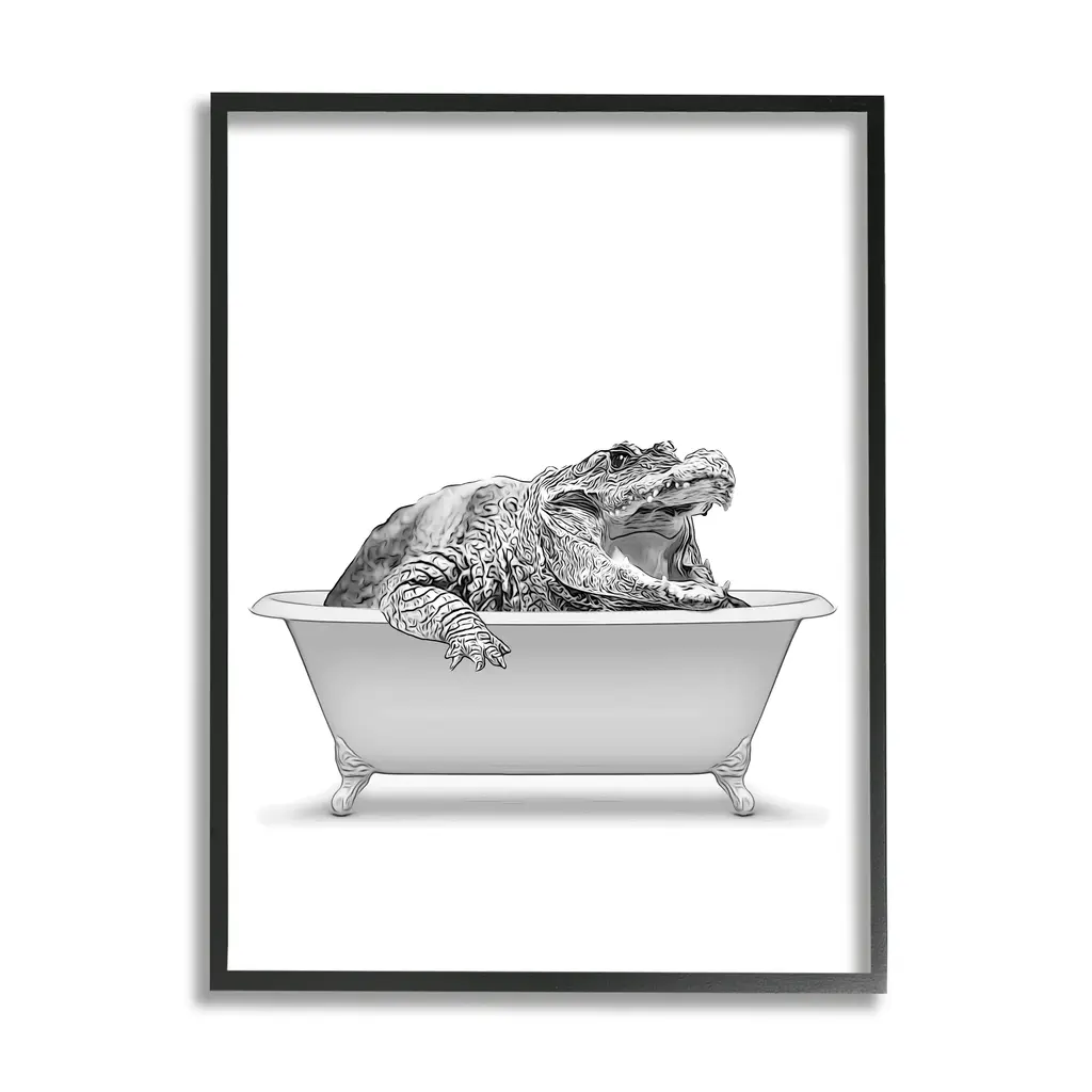Stupell Hippo In A Tub Funny Animal Bathroom Drawing Framed Wall Art - 11 X 14 - Black