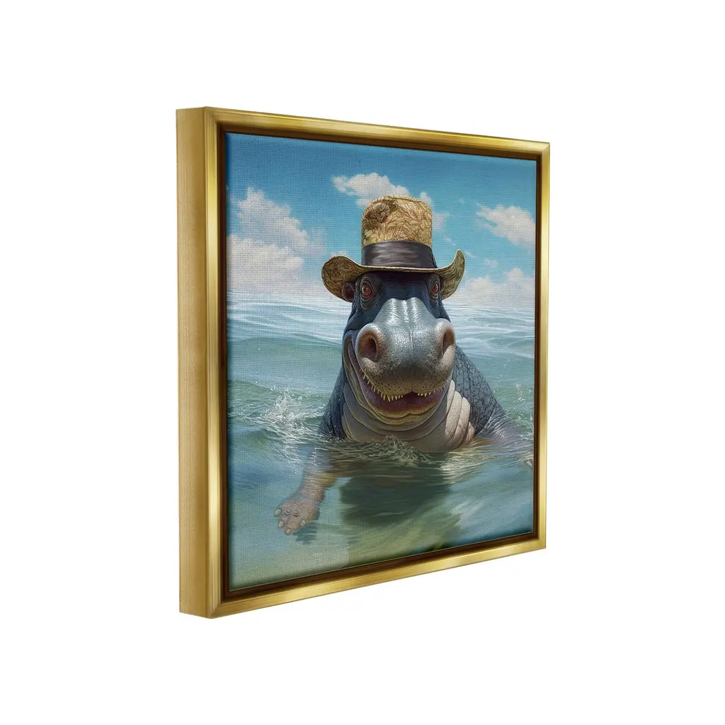 Elevate your home or office to the next level with Stupell Framed Floating Canvas Wall Art. Our premium hand-stretched canvas is mounted securely into a sturdy lightweight frame. The museum-style gap between the wrapped canvas and the box frame gives the illusion of floating artwork. Stupell Wall Art is made in the USA.Features: Dimensions: 18 x 1.7 x 18 Frame, 17 x 1.5 x 17 Canvas ArtFloating Frame Canvas Products are available in sizes 18"x18" and 25"x25". All Floating Frame Canvas Products have a 1.7" Depth.Wall Art is Ready to Hang with Hardware Free Hanging. No Installation required. For Easy Set Up Lean or Layer Artwork on Shelf or Against Wall. Artwork is Permently Fixed into the Frame.Our elevated 1.7" Thick Floating Frame is the perfect complement to our canvas style Wall Art. We use only the highest quality inks in house with industry leading printing solutions. Canvas is hand stretched over a durable wood foundation and then mounted securly into a Modern Box Frame. Made in the USA.Artwork Relates To: Animal, Mammal, Wildlife, Hippo, Hat, Ocean, Sea, FashionDesign by Lazar Studio