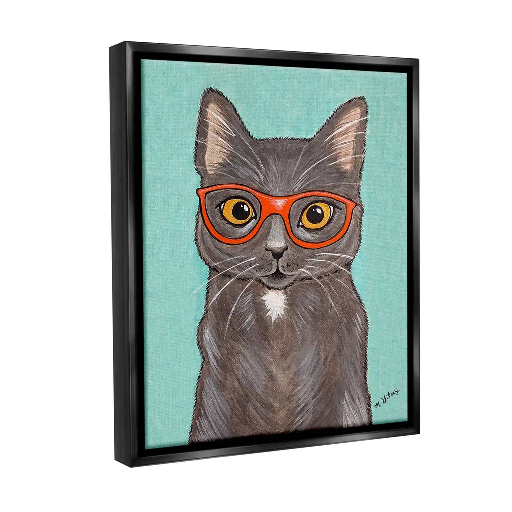 Elevate your home or office to the next level with Stupell Framed Floating Canvas Wall Art. Our premium hand-stretched canvas is mounted securely into a sturdy lightweight frame. The museum-style gap between the wrapped canvas and the box frame gives the illusion of floating artwork. Stupell Wall Art is made in the USA.Features: Dimensions: 17 x 1.7 x 21 Frame, 16 x 1.5 x 20 Canvas ArtFloating Frame Canvas Products are available in sizes 17"x21" and 25"x31". All Floating Frame Canvas Products have a 1.7" Depth.Wall Art is Ready to Hang with Hardware Free Hanging. No Installation required. For Easy Set Up Lean or Layer Artwork on Shelf or Against Wall. Artwork is Permently Fixed into the Frame.Our elevated 1.7" Thick Floating Frame is the perfect complement to our canvas style Wall Art. We use only the highest quality inks in house with industry leading printing solutions. Canvas is hand stretched over a durable wood foundation and then mounted securly into a Modern Box Frame. Made in the USA.Artwork Relates To: Animal, Cat, Mammal, Pet, Glasses, Hipster, PortraitDesign by Michelle Gilsey