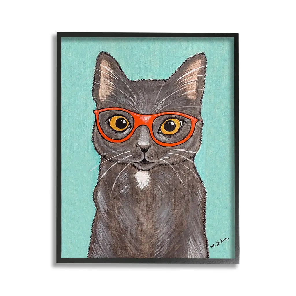 Add dimension to any room with our textured Framed Giclee Artwork. Our framed artwork is securely mounted into a 1.5-inch thick wood grain frame and ready to hang. Frames are available in three alluring styles: black, gray farmhouse and white. In addition, you should check out our oversized options if you want a statement piece. Stupell Wall Art is made in the USA.Features: Dimensions: 11 x 1.5 x 14 FramedFramed Giclee Products are available in the sizes 11"x14", 16"x20" or 24"x30". All Framed Giclee Products have a 1.5" Depth. Wall Art is Ready to Hang with Hardware Free Hanging. No installation required. For Easy Set Up Lean or Layer Artwork on Shelf or Against Wall.Our giclée prints are carefully mounted on a durable MDF backing, and then perfectly finished in a 1.5 inch thick woodgrain frame. Mounted frame colors include black, gray farmhouse and white. Made In USA.Artwork Relates To: Animal, Cat, Mammal, Pet, Glasses, Hipster, PortraitDesign by Michelle Gilsey