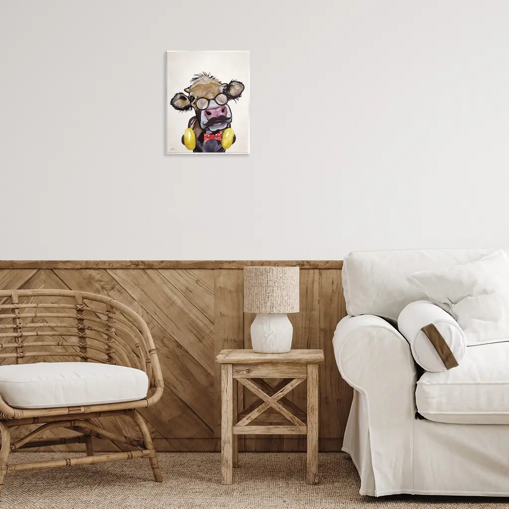 Our wall plaques start as high-quality lithograph prints mounted on durable 0.5-inch thick MDF wood. Each piece is hand finished and comes with a fresh layer of white foil on the sides to give it a crisp, clean look. Plaques arrive ready to hang without installation and come with removable plastic corners to keep them from damage in transit. Stupell Wall Art is made in the USA.Features: Dimensions: 11 x 0.5 x 14 InchesWall Art is Ready to Hang with Hardware Free Hanging. No installation required. For Easy Set Up Lean or Layer Artwork on Shelf or Against Wall.All of our wall plaques start off as high quality lithograph prints that are then mounted on durable 0.5 inch thick MDF wood. Each piece is hand finished and comes with a fresh layer of foil on the sides to give it a crisp clean look. Made In USA.Artwork Relates To: Animal, Cow, Cattle, Headphones, Glasses, MusicDesign by Lee Keller