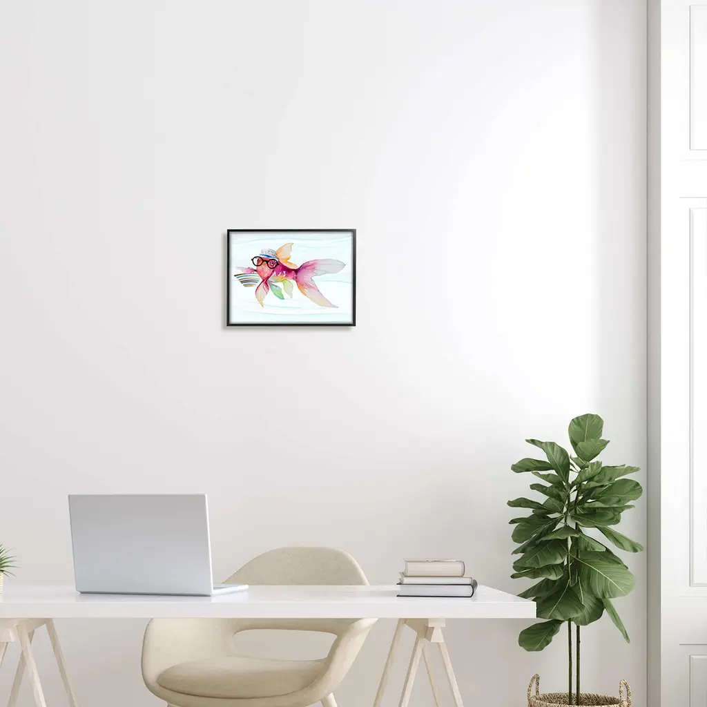 Our Framed Giclee Wall Art adds a touch of class to any space in your home or office. Frames are available in three alluring styles: black, gray farmhouse and white. Our textured artwork will add more depth and dimension to any space. Each piece is mounted with a 1.5 inch thick wood grain frame that is ready to hang! Looking for a statement piece? We have oversized artwork available. Room Type: Living Room, Den, Hallway, Office, Entryway, Study, Dining Room or Bedroom, Guest Room, Studio, Dorm or BoudoirFeatures: Dimensions: 14 x 1.5 x 11 FramedFramed Giclee Sizes Include Standard: 14 x 1.5 x 11 Large: 20 x 1.5 x 16 Oversized: 30 x 1.5 x 24Wall Art is Ready to Hang - No Installation or Hardware Needed. For Easy Set Up Lean or Layer Artwork on Shelf or Against Wall.Our giclée prints are carefully mounted on a durable MDF backing, and then perfectly finished in a 1.5 inch thick woodgrain frame. Mounted frame colors include black, gray farmhouse and white. Made In USA.Artwork Relates To: Animal, Fish, Sea Life, Underwater, FunnyDesign by Lanie Loreth