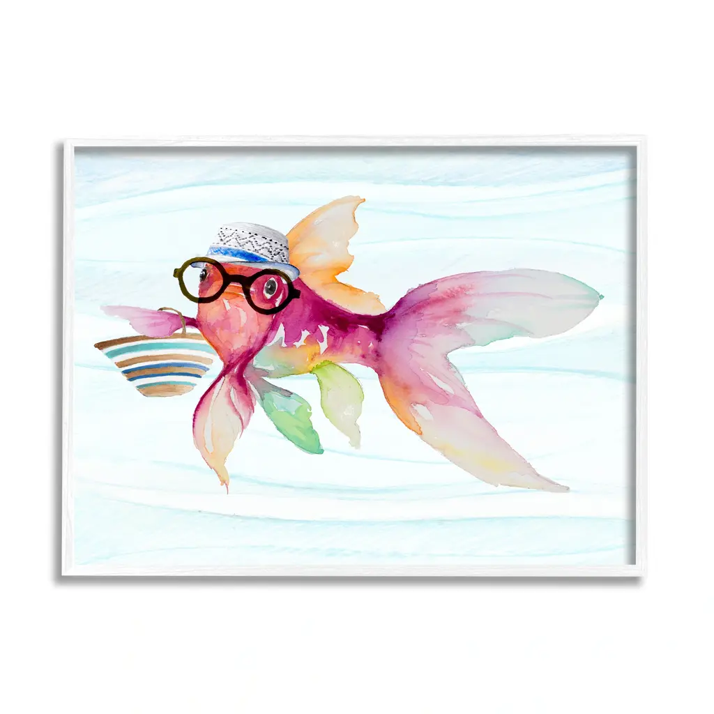 Stupell Hipster Fish Funny Sea Life Framed Giclee Art By Lanie Loreth - 20 X 16 - White