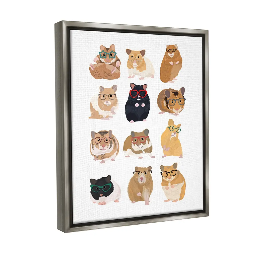Elevate your home or office to the next level with Stupell Framed Floating Canvas Wall Art. Our premium hand-stretched canvas is mounted securely into a sturdy lightweight frame. The museum-style gap between the wrapped canvas and the box frame gives the illusion of floating artwork. Stupell Wall Art is made in the USA.Features: Dimensions: 17 x 1.7 x 21 Frame, 16 x 1.5 x 20 Canvas ArtFloating Frame Canvas Products are available in sizes 17"x21" and 25"x31". All Floating Frame Canvas Products have a 1.7" Depth.Wall Art is Ready to Hang with Hardware Free Hanging. No Installation required. For Easy Set Up Lean or Layer Artwork on Shelf or Against Wall. Artwork is Permently Fixed into the Frame.Our elevated 1.7" Thick Floating Frame is the perfect complement to our canvas style Wall Art. We use only the highest quality inks in house with industry leading printing solutions. Canvas is hand stretched over a durable wood foundation and then mounted securly into a Modern Box Frame. Made in the USA.Artwork Relates To: Animal, Pet, Mammal, Rodent, Hamster, Fashion, Glasses, HipsterDesign by Hanna Melin