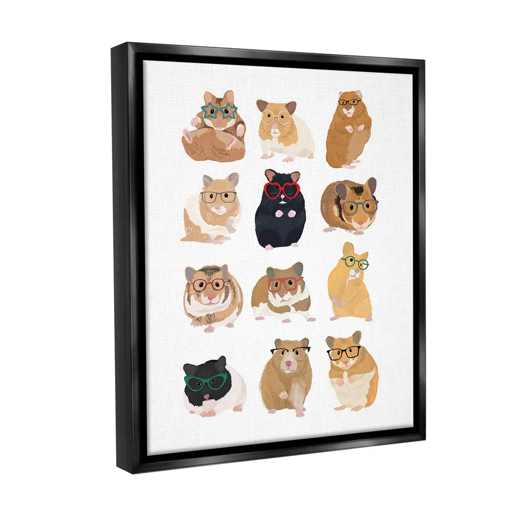 Elevate your home or office to the next level with Stupell Framed Floating Canvas Wall Art. Our premium hand-stretched canvas is mounted securely into a sturdy lightweight frame. The museum-style gap between the wrapped canvas and the box frame gives the illusion of floating artwork. Stupell Wall Art is made in the USA.Features: Dimensions: 17 x 1.7 x 21 Frame, 16 x 1.5 x 20 Canvas ArtFloating Frame Canvas Products are available in sizes 17"x21" and 25"x31". All Floating Frame Canvas Products have a 1.7" Depth.Wall Art is Ready to Hang with Hardware Free Hanging. No Installation required. For Easy Set Up Lean or Layer Artwork on Shelf or Against Wall. Artwork is Permently Fixed into the Frame.Our elevated 1.7" Thick Floating Frame is the perfect complement to our canvas style Wall Art. We use only the highest quality inks in house with industry leading printing solutions. Canvas is hand stretched over a durable wood foundation and then mounted securly into a Modern Box Frame. Made in the USA.Artwork Relates To: Animal, Pet, Mammal, Rodent, Hamster, Fashion, Glasses, HipsterDesign by Hanna Melin