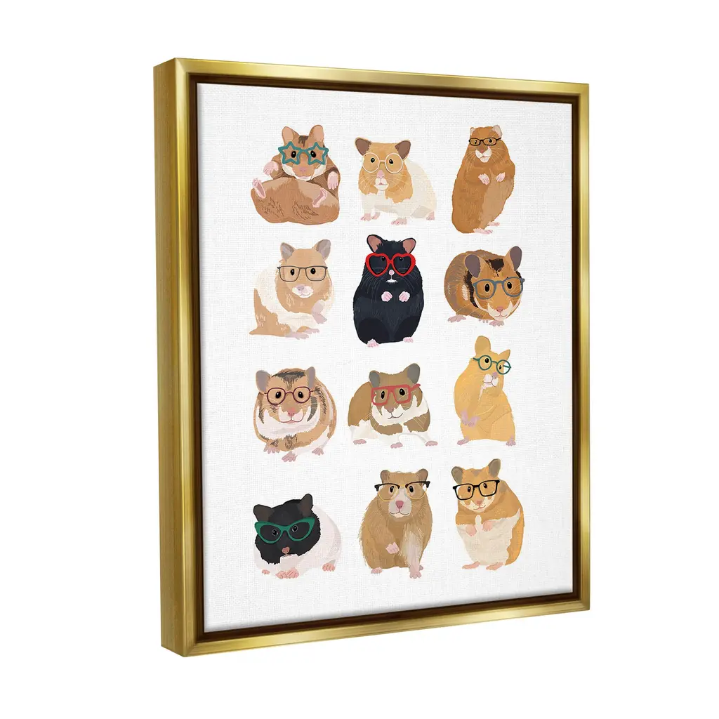 Elevate your home or office to the next level with Stupell Framed Floating Canvas Wall Art. Our premium hand-stretched canvas is mounted securely into a sturdy lightweight frame. The museum-style gap between the wrapped canvas and the box frame gives the illusion of floating artwork. Stupell Wall Art is made in the USA.Features: Dimensions: 17 x 1.7 x 21 Frame, 16 x 1.5 x 20 Canvas ArtFloating Frame Canvas Products are available in sizes 17"x21" and 25"x31". All Floating Frame Canvas Products have a 1.7" Depth.Wall Art is Ready to Hang with Hardware Free Hanging. No Installation required. For Easy Set Up Lean or Layer Artwork on Shelf or Against Wall. Artwork is Permently Fixed into the Frame.Our elevated 1.7" Thick Floating Frame is the perfect complement to our canvas style Wall Art. We use only the highest quality inks in house with industry leading printing solutions. Canvas is hand stretched over a durable wood foundation and then mounted securly into a Modern Box Frame. Made in the USA.Artwork Relates To: Animal, Pet, Mammal, Rodent, Hamster, Fashion, Glasses, HipsterDesign by Hanna Melin