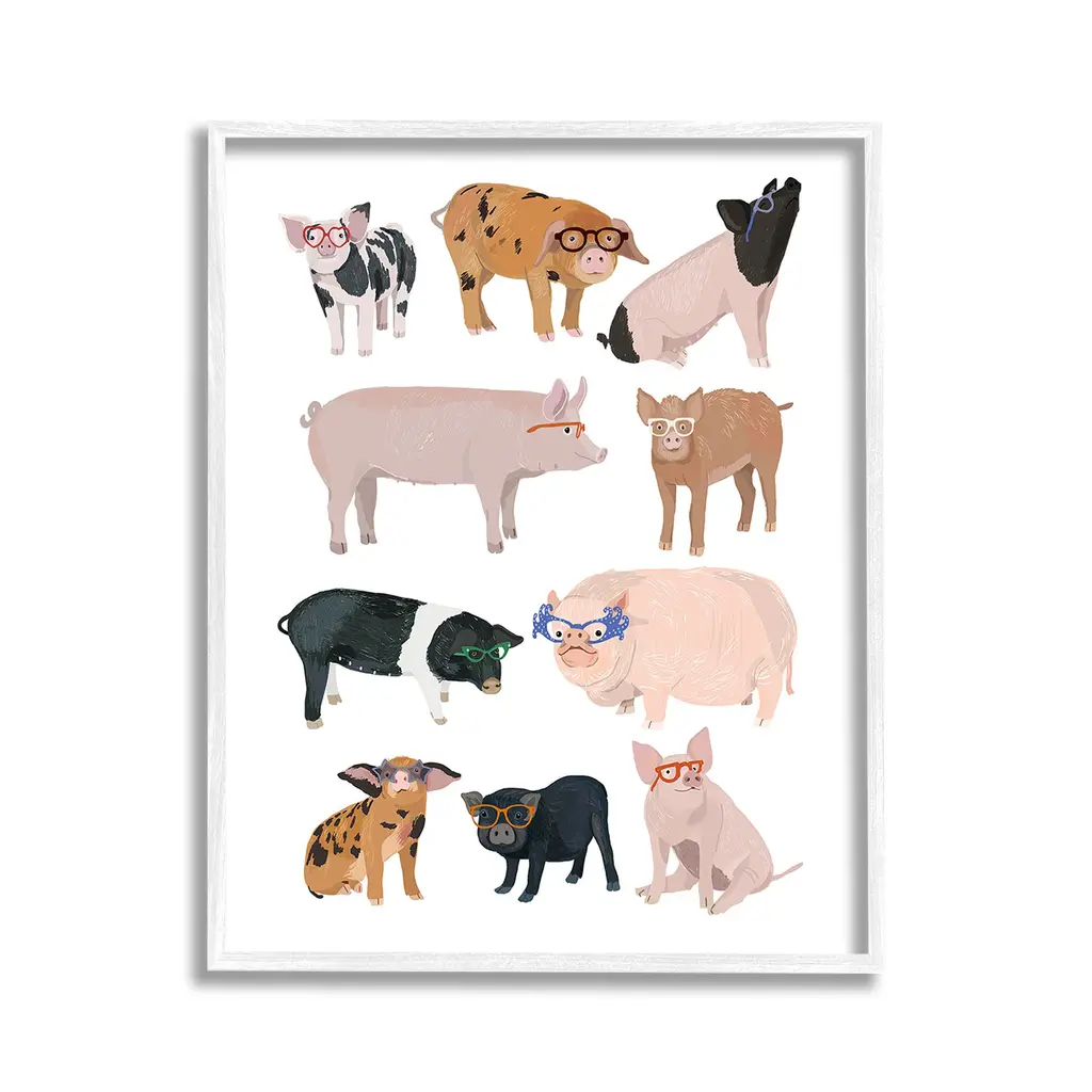 Add dimension to any room with our textured Framed Giclee Artwork. Our framed artwork is securely mounted into a 1.5-inch thick wood grain frame and ready to hang. Frames are available in three alluring styles: black, gray farmhouse and white. In addition, you should check out our oversized options if you want a statement piece. Stupell Wall Art is made in the USA.Features: Dimensions: 11 x 1.5 x 14 FramedFramed Giclee Products are available in the sizes 11"x14", 16"x20" or 24"x30". All Framed Giclee Products have a 1.5" Depth. Wall Art is Ready to Hang with Hardware Free Hanging. No installation required. For Easy Set Up Lean or Layer Artwork on Shelf or Against Wall.Our giclée prints are carefully mounted on a durable MDF backing, and then perfectly finished in a 1.5 inch thick woodgrain frame. Mounted frame colors include black, gray farmhouse and white. Made In USA.Artwork Relates To: Animal, Pet, Mammal, Fashion, Glasses, Hipster, Pig, Farm, PigletDesign by Hanna Melin
