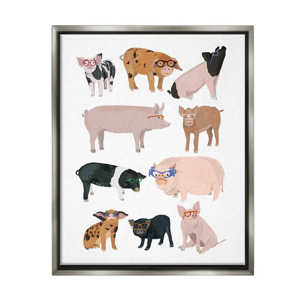 Add dimension to any room with our textured Framed Giclee Artwork. Our framed artwork is securely mounted into a 1.5-inch thick wood grain frame and ready to hang. Frames are available in three alluring styles: black, gray farmhouse and white. In addition, you should check out our oversized options if you want a statement piece. Stupell Wall Art is made in the USA.Features: Dimensions: 11 x 1.5 x 14 FramedFramed Giclee Products are available in the sizes 11"x14", 16"x20" or 24"x30". All Framed Giclee Products have a 1.5" Depth. Wall Art is Ready to Hang with Hardware Free Hanging. No installation required. For Easy Set Up Lean or Layer Artwork on Shelf or Against Wall.Our giclée prints are carefully mounted on a durable MDF backing, and then perfectly finished in a 1.5 inch thick woodgrain frame. Mounted frame colors include black, gray farmhouse and white. Made In USA.Artwork Relates To: Animal, Pet, Mammal, Fashion, Glasses, Hipster, Pig, Farm, PigletDesign by Hanna Melin