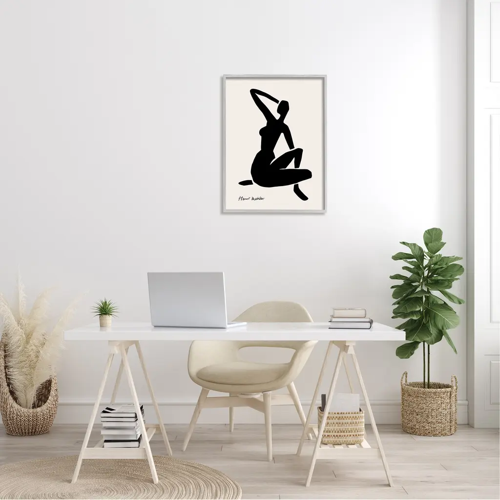 Stupell Historic Matisse Woman Sitting Minimal Silhouette Framed Wall Art - Black - 24 X 30 - Grey