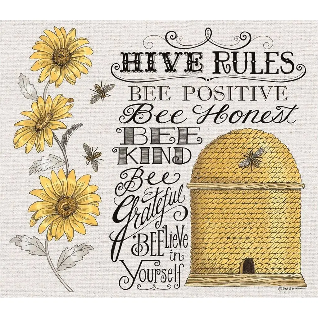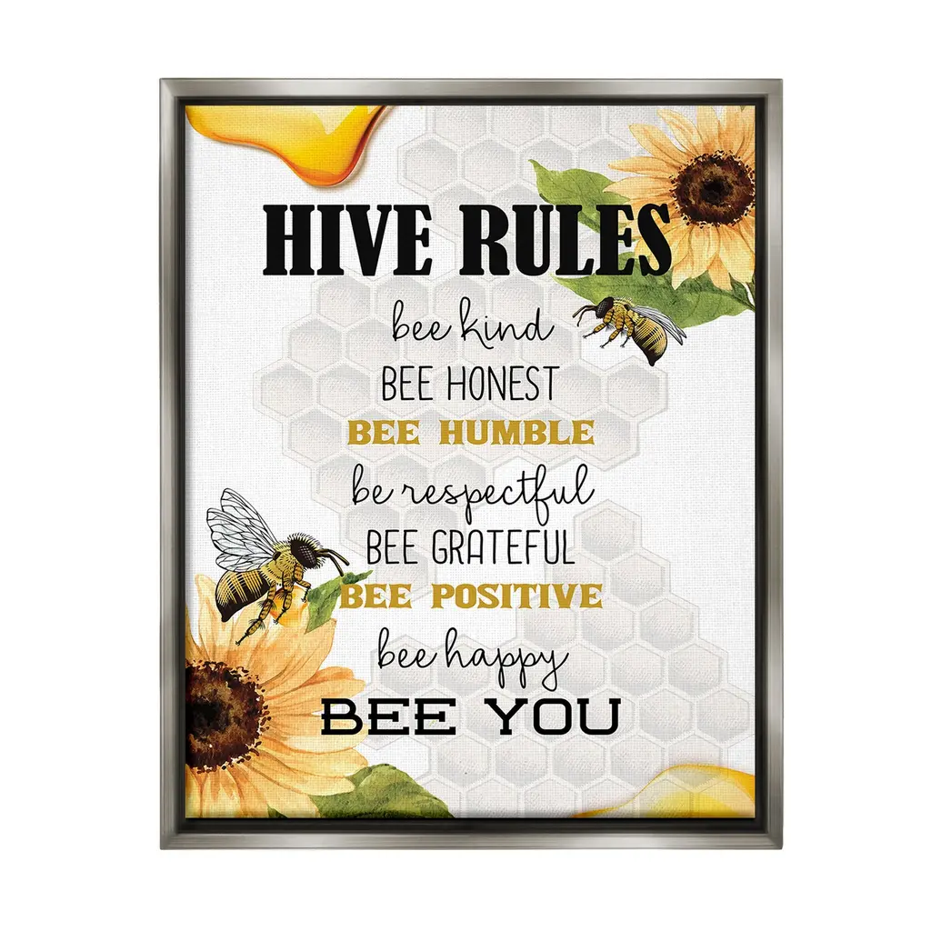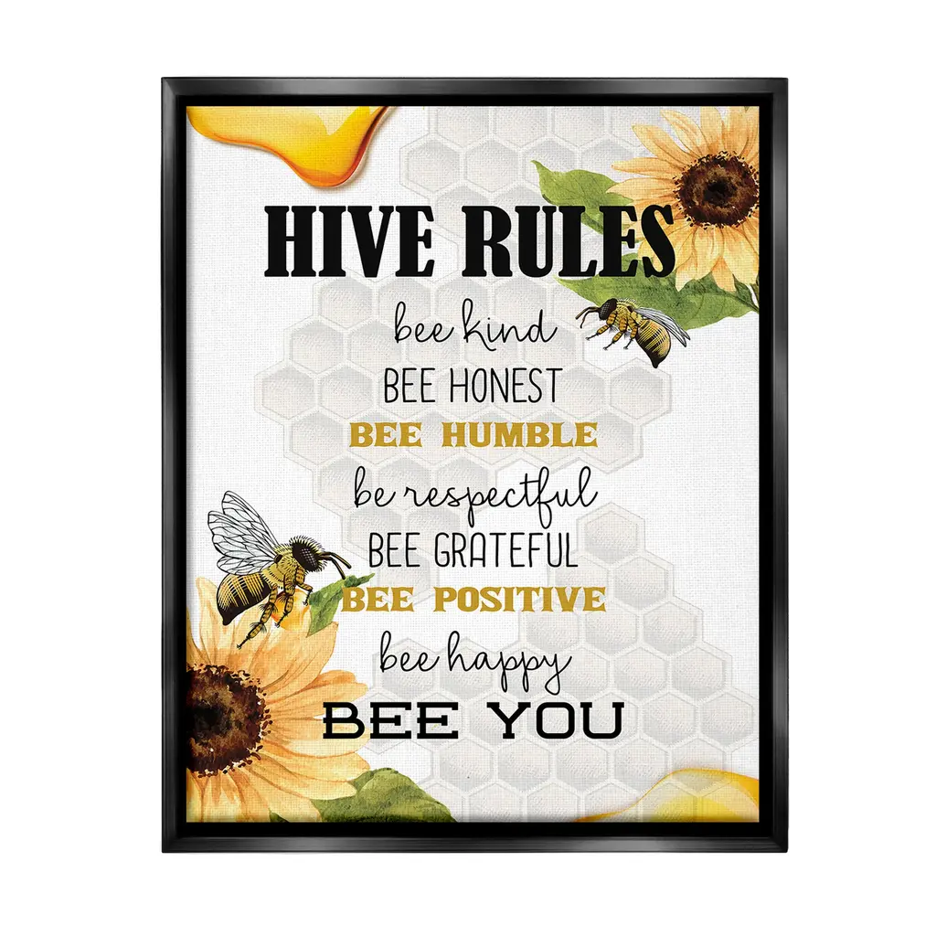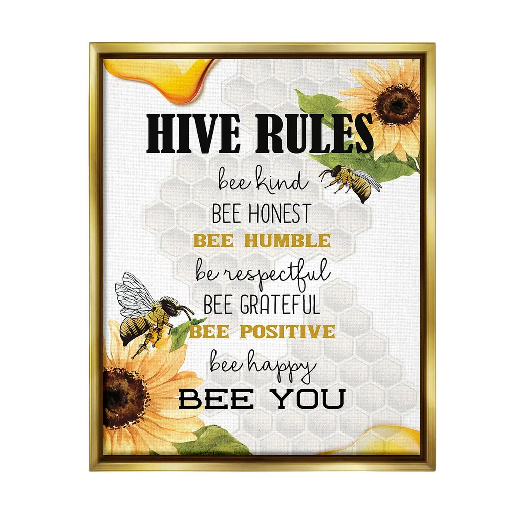 Stupell Hive Rules Motivational Phrases Bee Puns Vintage Beehive Framed Wall Art - Yellow - 14 X 11 - White