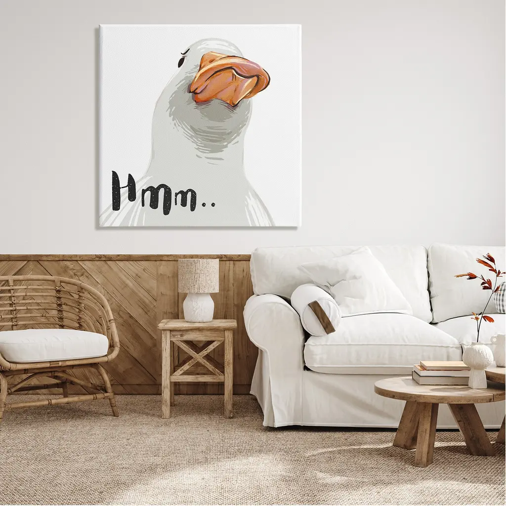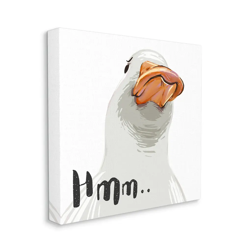 We create our stretched canvas to the highest standards. Using only the highest quality inks and canvas on Mimaki printers, we hand-cut and stretch each piece over a 1.5-inch thick wooden frame for hanging. As a result, the art comes ready to hang on the sturdy ledge with no installation required. Stupell Wall Art is made in the USA.Features: Dimensions: 17 x 1.5 x 17 InchesStretched Canvas Sizes Include Standard: 17 x 1.5 x 17 Large: 24 x 1.5 x 24 X-Large: 30 x 1.5 x 30 Oversized: 36 x 1.5 x 36Wall Art is Ready to Hang - No Installation or Hardware Needed. For Easy Set Up Lean or Layer Artwork on Shelf or Against Wall.Our stretched canvas is created with the highest standards. We use only the highest quality inks and canvas on our in house Mimaki printers, and then hand cut and stretch each piece over a 1.5 inch thick wooden frame for hanging. Made In USA.Artwork Relates To: Animal, Beak, Bird, Duck, Goose, HmmDesign by Ziwei Li