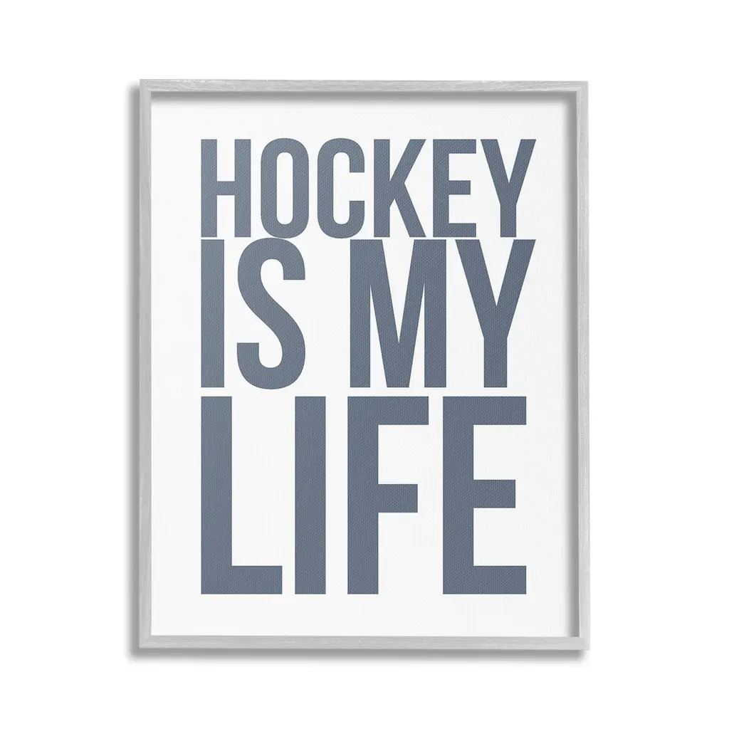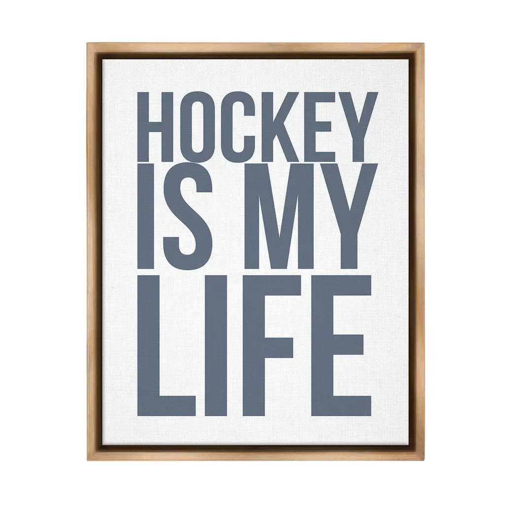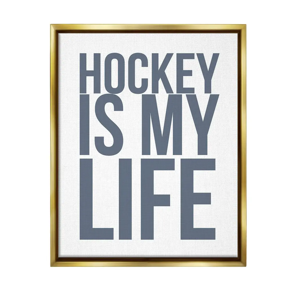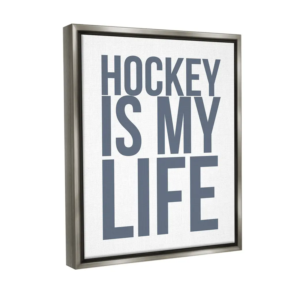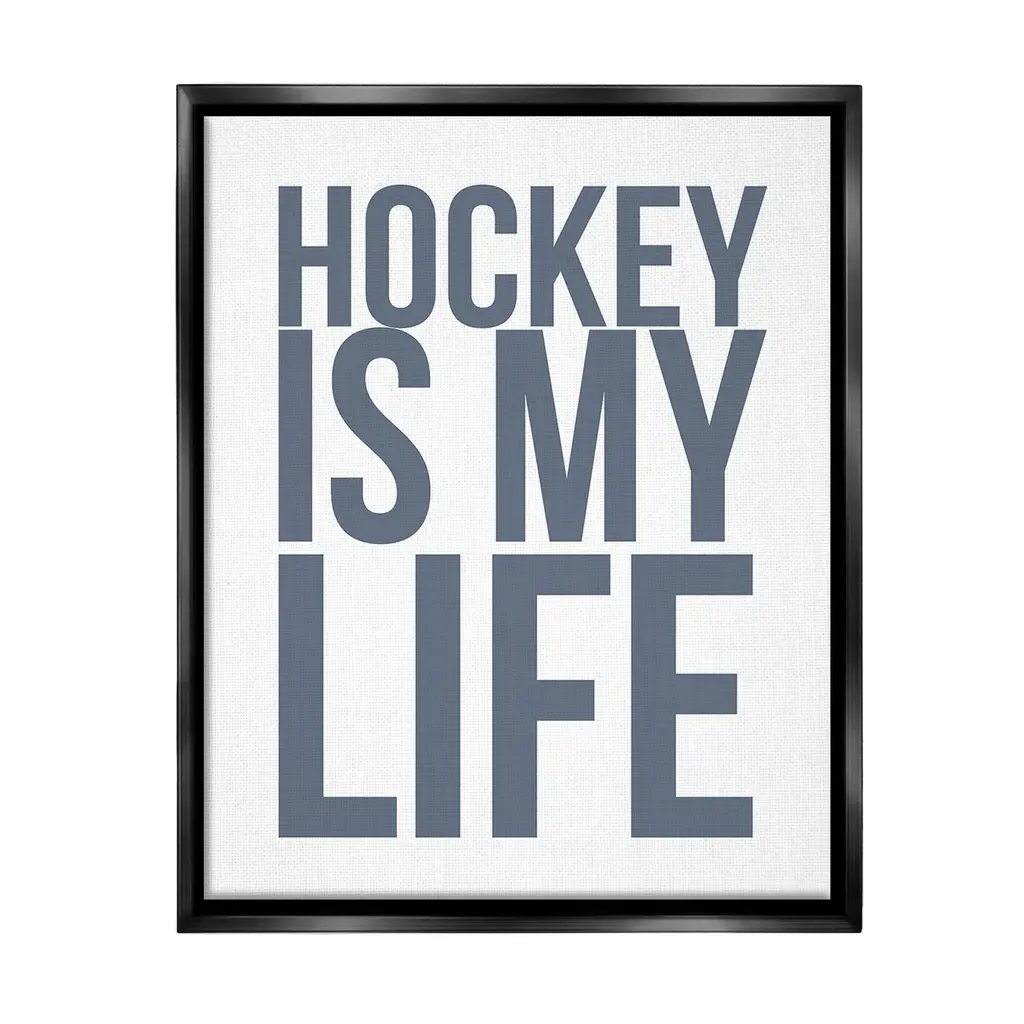 Elevate your home or office to the next level with Stupell Framed Floating Canvas Wall Art. Our premium hand-stretched canvas is mounted securely into a sturdy lightweight frame. The museum-style gap between the wrapped canvas and the box frame gives the illusion of floating artwork. Stupell Wall Art is made in the USA.Features: Dimensions: 17 x 1.7 x 21 Frame, 16 x 1.5 x 20 Canvas ArtFloating Frame Canvas Products are available in sizes 17"x21" and 25"x31". All Floating Frame Canvas Products have a 1.7" Depth.Wall Art is Ready to Hang with Hardware Free Hanging. No Installation required. For Easy Set Up Lean or Layer Artwork on Shelf or Against Wall. Artwork is Permently Fixed into the Frame.Our elevated 1.7" Thick Floating Frame is the perfect complement to our canvas style Wall Art. We use only the highest quality inks in house with industry leading printing solutions. Canvas is hand stretched over a durable wood foundation and then mounted securly into a Modern Box Frame. Made in the USA.Artwork Relates To: Hockey, Sport, Ice Hockey, Phrase, Minimal, Hockey Is My LifeDesign by Leah Straatsma