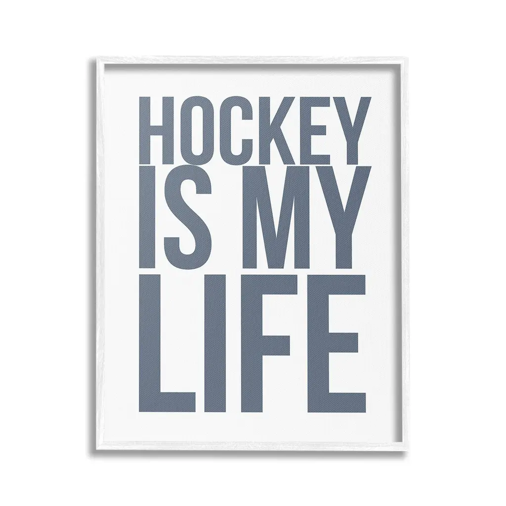 Add dimension to any room with our textured Framed Giclee Artwork. Our framed artwork is securely mounted into a 1.5-inch thick wood grain frame and ready to hang. Frames are available in three alluring styles: black, gray farmhouse and white. In addition, you should check out our oversized options if you want a statement piece. Stupell Wall Art is made in the USA.Features: Dimensions: 11 x 1.5 x 14 FramedFramed Giclee Products are available in the sizes 11"x14", 16"x20" or 24"x30". All Framed Giclee Products have a 1.5" Depth. Wall Art is Ready to Hang with Hardware Free Hanging. No installation required. For Easy Set Up Lean or Layer Artwork on Shelf or Against Wall.Our giclée prints are carefully mounted on a durable MDF backing, and then perfectly finished in a 1.5 inch thick woodgrain frame. Mounted frame colors include black, gray farmhouse and white. Made In USA.Artwork Relates To: Hockey, Sport, Ice Hockey, Phrase, Minimal, Hockey Is My LifeDesign by Leah Straatsma