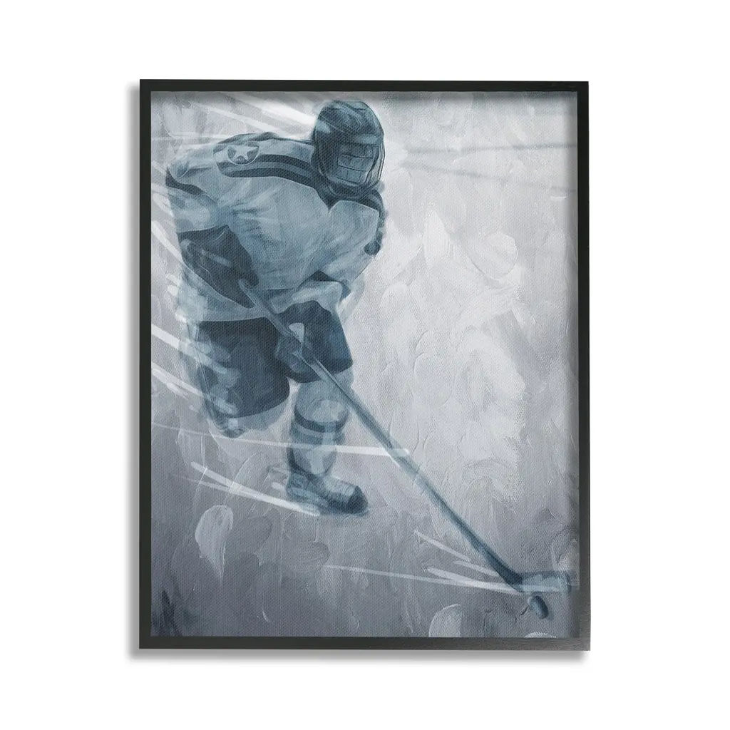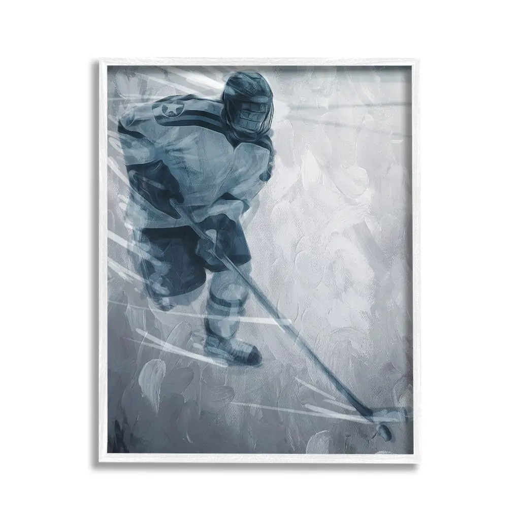 Add dimension to any room with our textured Framed Giclee Artwork. Our framed artwork is securely mounted into a 1.5-inch thick wood grain frame and ready to hang. Frames are available in three alluring styles: black, gray farmhouse and white. In addition, you should check out our oversized options if you want a statement piece. Stupell Wall Art is made in the USA.Features: Dimensions: 11 x 1.5 x 14 FramedFramed Giclee Products are available in the sizes 11"x14", 16"x20" or 24"x30". All Framed Giclee Products have a 1.5" Depth. Wall Art is Ready to Hang with Hardware Free Hanging. No installation required. For Easy Set Up Lean or Layer Artwork on Shelf or Against Wall.Our giclée prints are carefully mounted on a durable MDF backing, and then perfectly finished in a 1.5 inch thick woodgrain frame. Mounted frame colors include black, gray farmhouse and white. Made In USA.Artwork Relates To: Hockey, Ice Hockey, Rink, Skating, Sport, Hockey Stick, Hockey Puck, Abstract, MonochromeDesign by Milli Villa