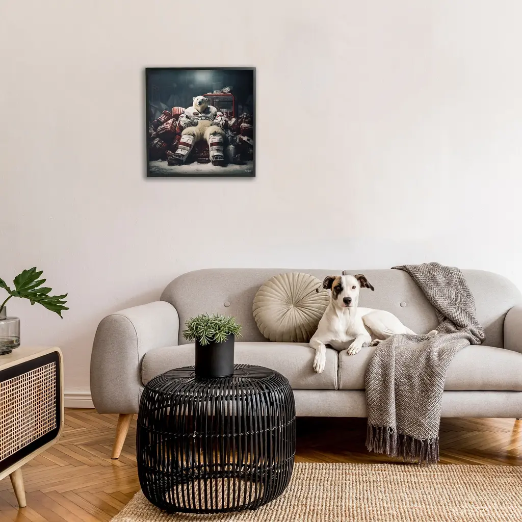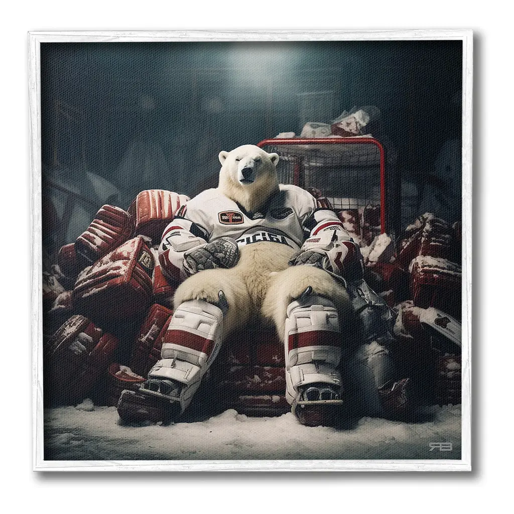 Add dimension to any room with our textured Framed Giclee Artwork. Our framed artwork is securely mounted into a 1.5-inch thick wood grain frame and ready to hang. Frames are available in three alluring styles: black, gray farmhouse and white. In addition, you should check out our oversized options if you want a statement piece. Stupell Wall Art is made in the USA.Features: Dimensions: 12 x 1.5 x 12 FramedFramed Giclee Product Sizes Include 12"x12", 17"x17", and 24"x24". Framed Giclee Products have a 1.5" Depth. Wall Art is Ready to Hang with Hardware Free Hanging. No installation required. For Easy Set Up Lean or Layer Artwork on Shelf or Against Wall.Our giclée prints are carefully mounted on a durable MDF backing, and then perfectly finished in a 1.5 inch thick woodgrain frame. Mounted frame colors include black, gray farmhouse and white. Made In USA.Artwork Relates To: Animal, Bear, Mammal, Wildlife, Polar Bear, Hockey, Sport, Sports EquipmentDesign by RB