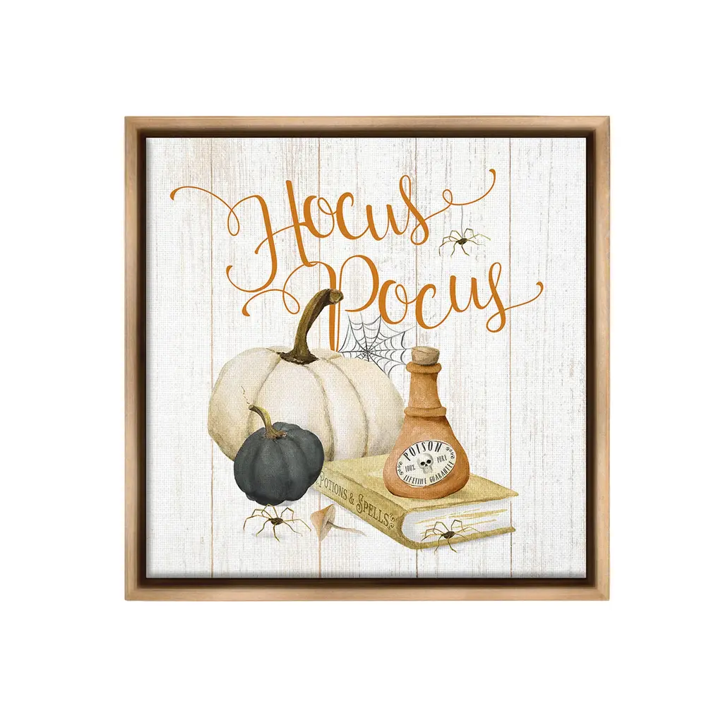 Elevate your home or office to the next level with Stupell Framed Floating Canvas Wall Art. Our premium hand-stretched canvas is mounted securely into a sturdy lightweight frame. The museum-style gap between the wrapped canvas and the box frame gives the illusion of floating artwork. Stupell Wall Art is made in the USA.Features: Dimensions: 18 x 1.7 x 18 Frame, 17 x 1.5 x 17 Canvas ArtFloating Frame Canvas Products are available in sizes 18"x18" and 25"x25". All Floating Frame Canvas Products have a 1.7" Depth.Wall Art is Ready to Hang with Hardware Free Hanging. No Installation required. For Easy Set Up Lean or Layer Artwork on Shelf or Against Wall. Artwork is Permently Fixed into the Frame.Our elevated 1.7" Thick Floating Frame is the perfect complement to our canvas style Wall Art. We use only the highest quality inks in house with industry leading printing solutions. Canvas is hand stretched over a durable wood foundation and then mounted securly into a Modern Box Frame. Made in the USA.Artwork Relates To: Seasonal, Fall, Autumn, Pumpkin, Potion, Poison, Witch, Book, Spider, Web, Mushroom, Halloween, Botanical, Hocus PocusDesign by Deane Beesley